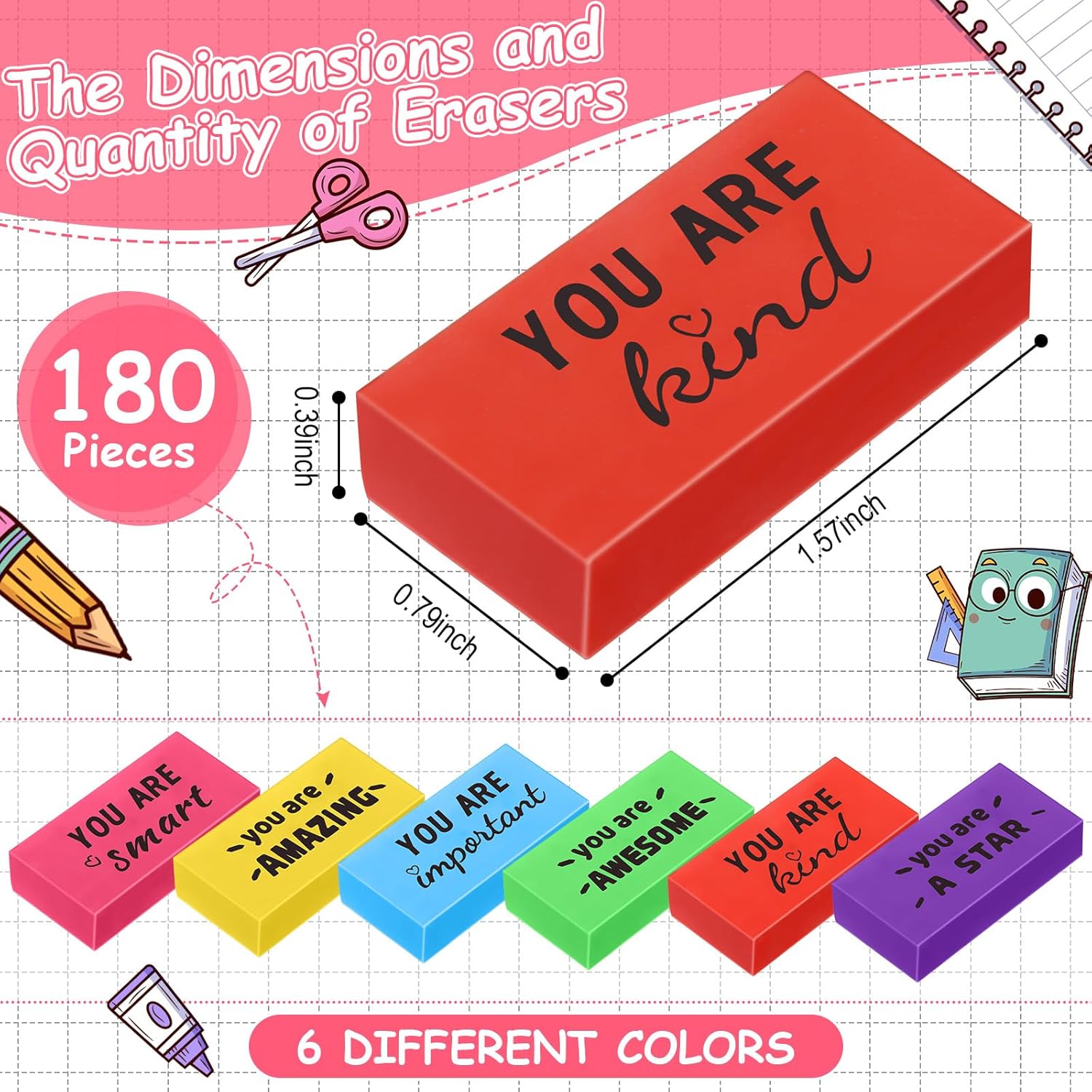 - Generous Packaging: the package includes 180 inspirational erasers bulk, ensuring that you never run out; Whether for personal use or a classroom setting, this bulk printed with 6 different motivational designs, satisfying all your erasing needs for a long time