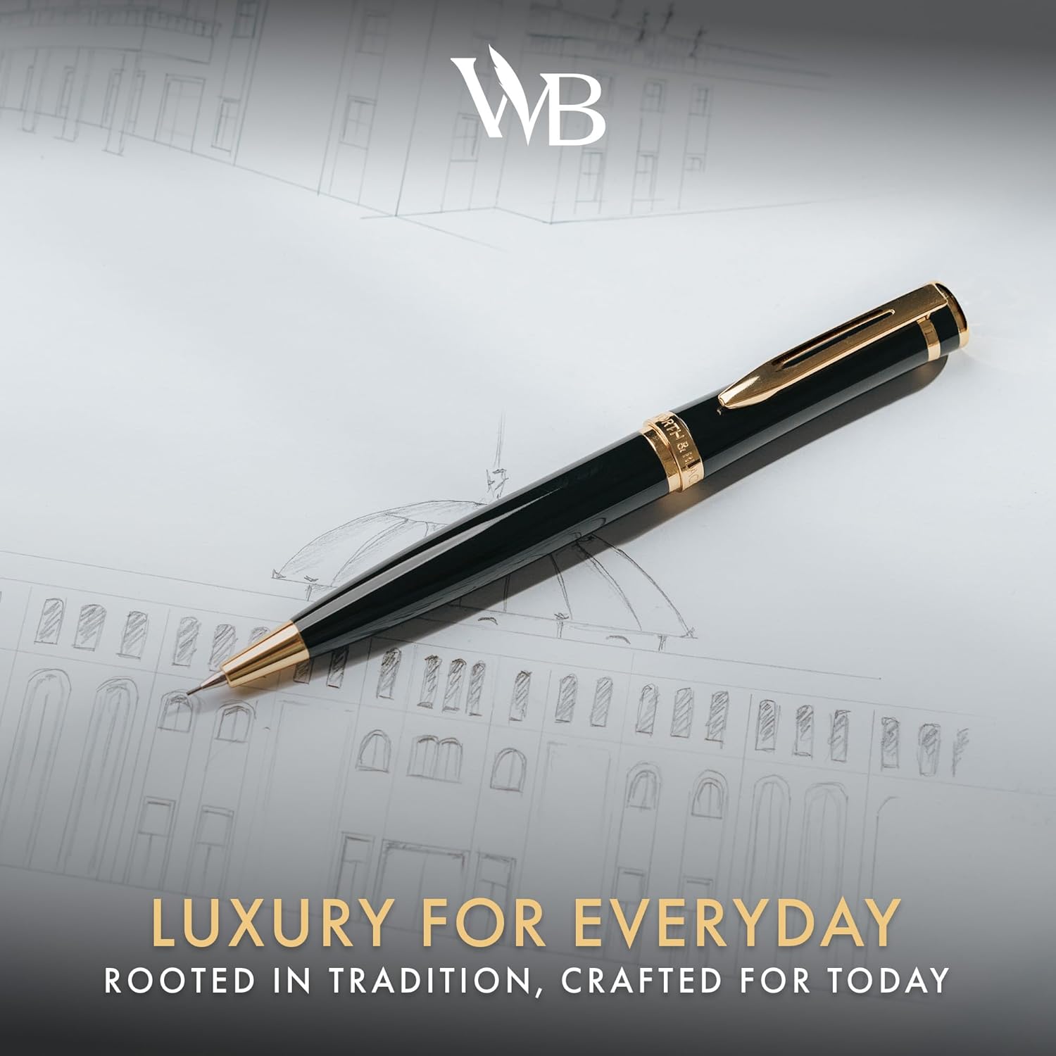 Wordsworth and Black Mechanical Pencil Graphite Lead- Stunning Luxury Metal Pencil, Black Lacquer 24K Gold Finish, 0.7mm Led, Best Gift Set for Men & Women, Professional Executive Office Pencils