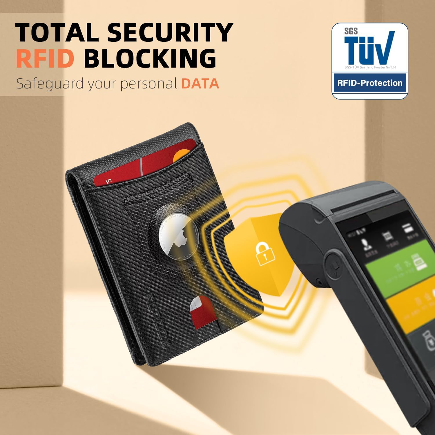 - RFID ANTI-THEFT FUNCTION - This wallet for AirTag boasts RFID blocking shield technology, safeguarding your personal and financial data against unauthorized scanning and identity theft. Enjoy peace of mind knowing that your information is safe and secure