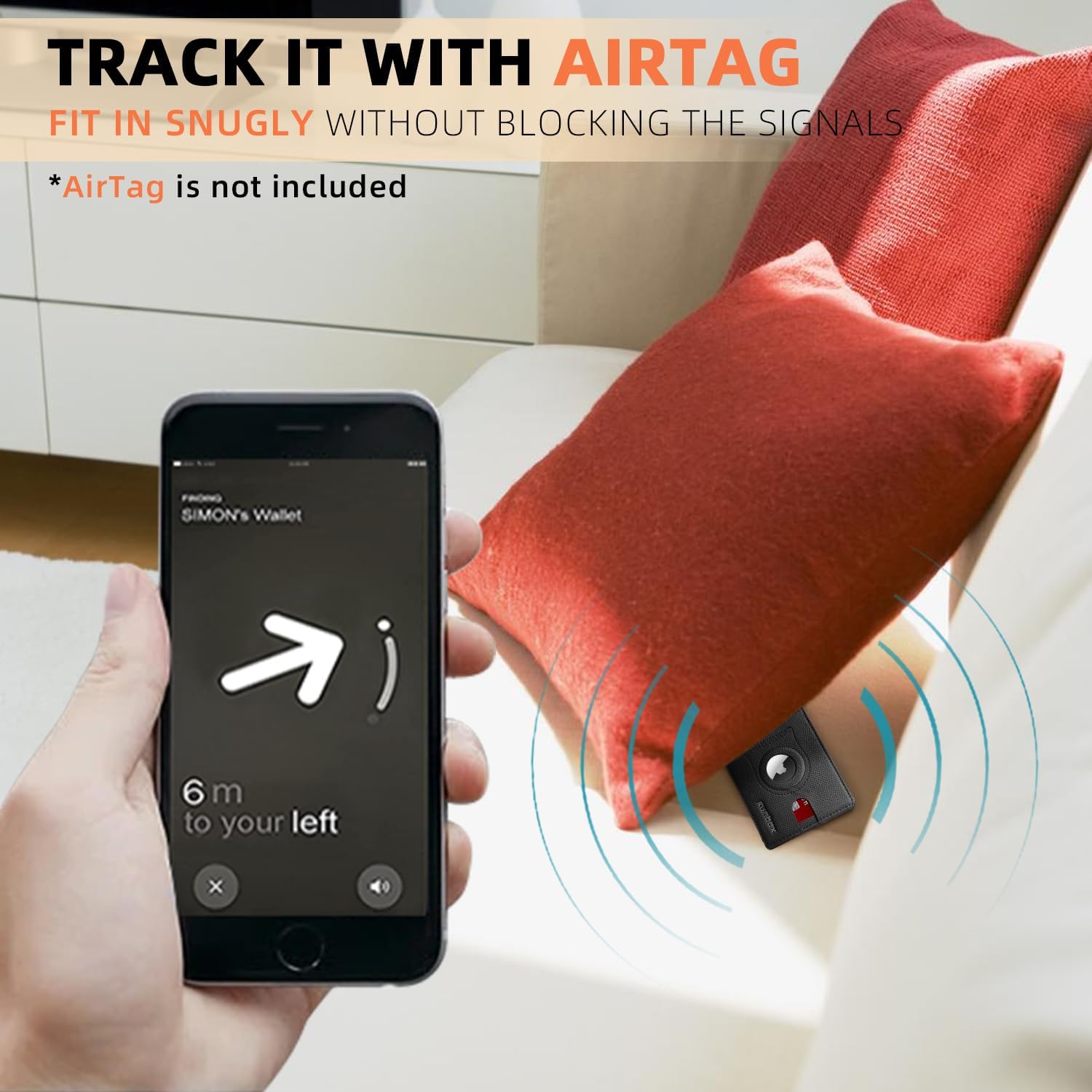 - RFID ANTI-THEFT FUNCTION - This wallet for AirTag boasts RFID blocking shield technology, safeguarding your personal and financial data against unauthorized scanning and identity theft. Enjoy peace of mind knowing that your information is safe and secure