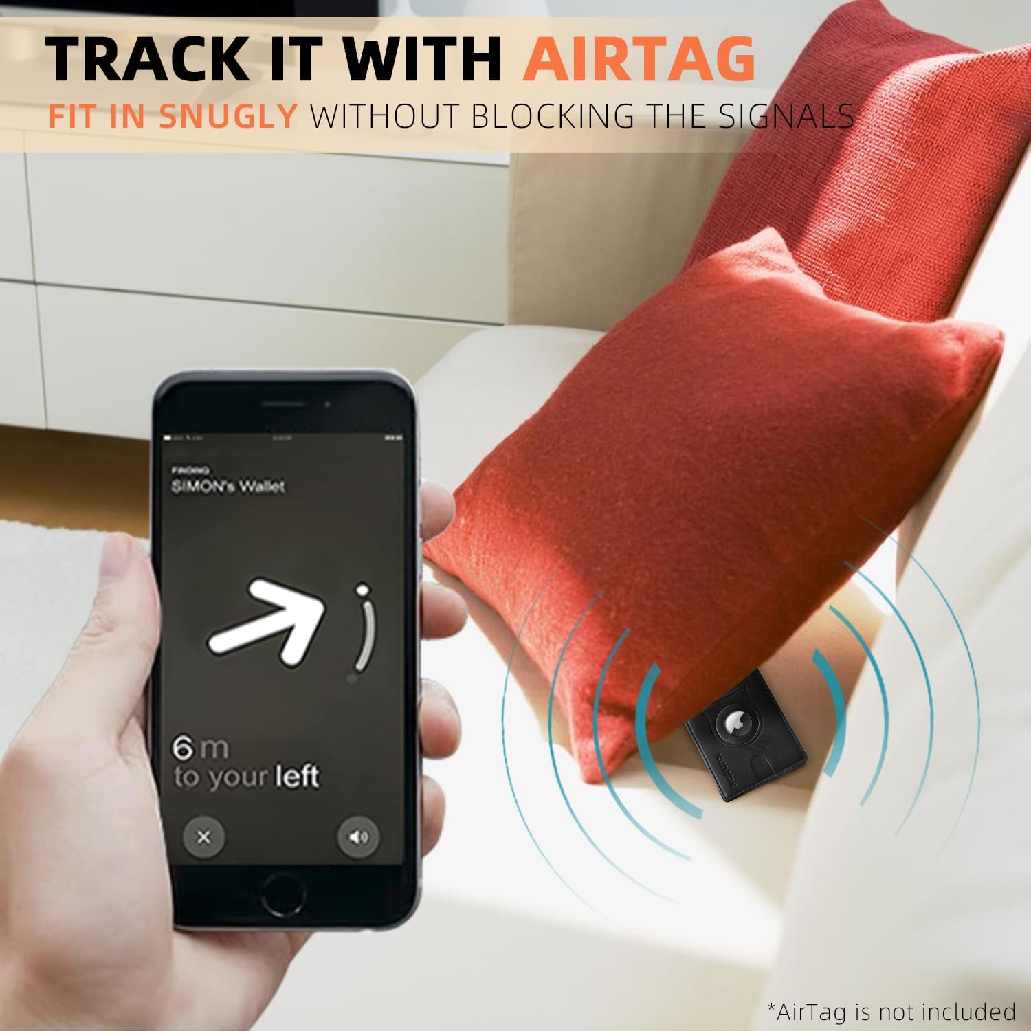 - RFID ANTI-THEFT FUNCTION - This wallet for AirTag boasts RFID blocking shield technology, safeguarding your personal and financial data against unauthorized scanning and identity theft. Enjoy peace of mind knowing that your information is safe and secure