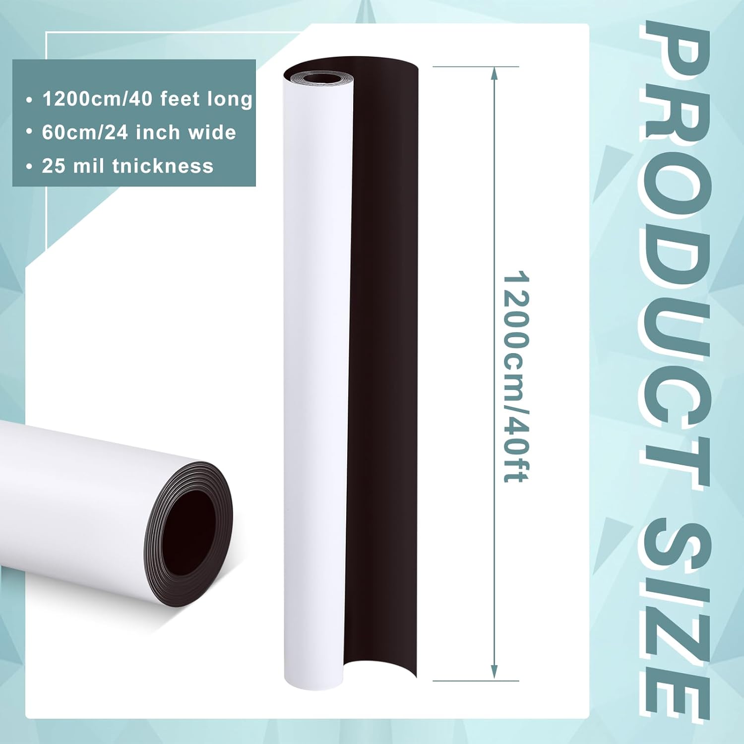 - What You Will Receive: you will get 1 roll of magnetic vinyl, measuring about 12.2 meters/ 40 ft in length, 60 cm/ 24 inches in width, 25 mils in thickness, adequate length to satisfy your daily use and decoration demands, bringing convenience to your life