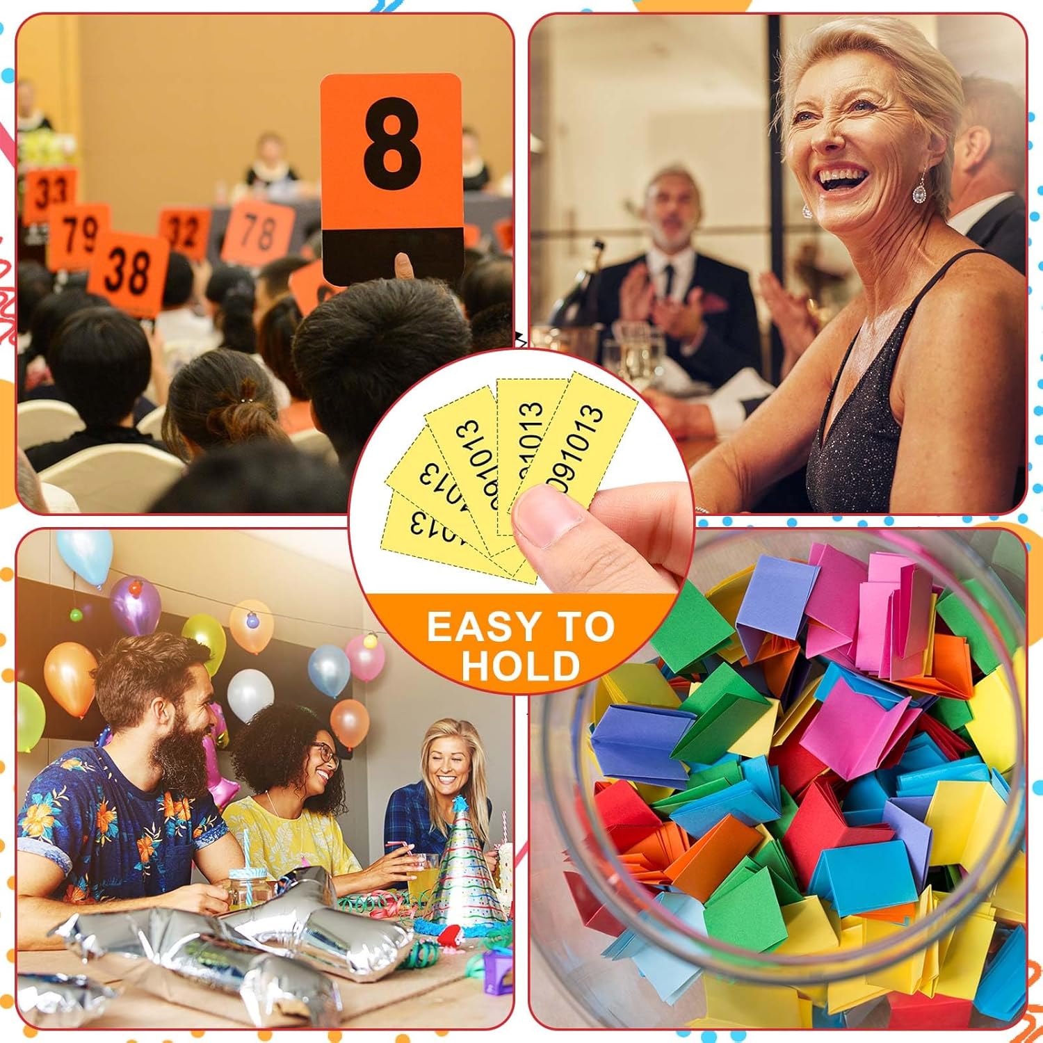 - What's Included in the Package: the package comes with 1000 sheets auction tickets in dark yellow, each sheet with 5 bid numbers, good selections for Chinese auction, penny auction, fund raising event and so on