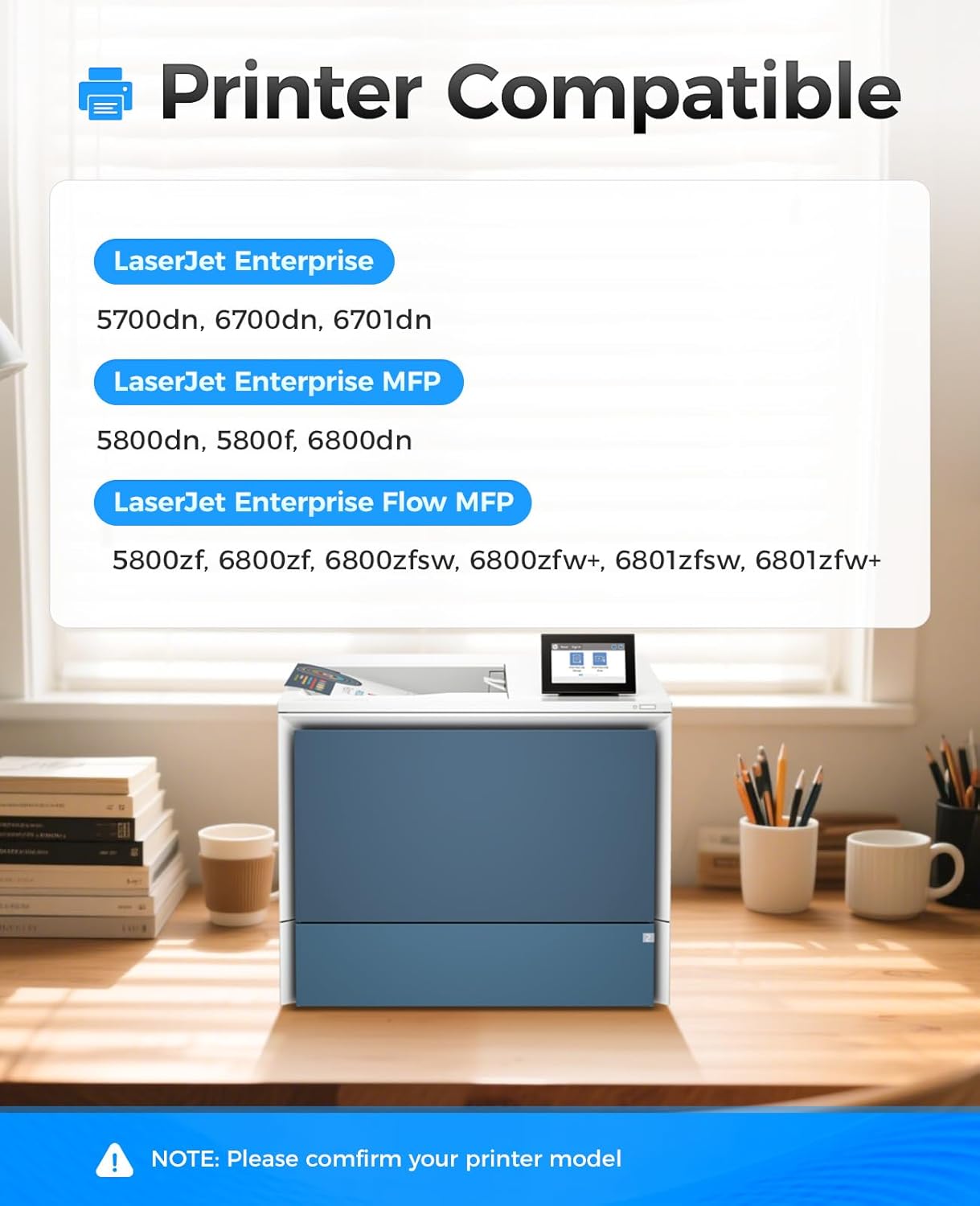 - Compatible Devices : Compatible with HP Color LaserJet Enterprise 5700dn 6700dn 6701dn, Color LaserJet Enterprise MFP 5800dn 5800f 6800dn, Color LaserJet Enterprise Flow MFP 5800zf 6800zf 6800zfsw, Color LaserJet Enterprise Flow MFP 6800zfw+ 6801zfsw 6801zfw+ Series Printer. Compatible with HP Color LaserJet Enterprise 5700dn 6700dn 6701dn, Color LaserJet Enterprise MFP 5800dn 5800f 6800dn, Color LaserJet Enterprise Flow MFP 5800zf 6800zf 6800zfsw, Color LaserJet Enterprise Flow MFP 68… See more