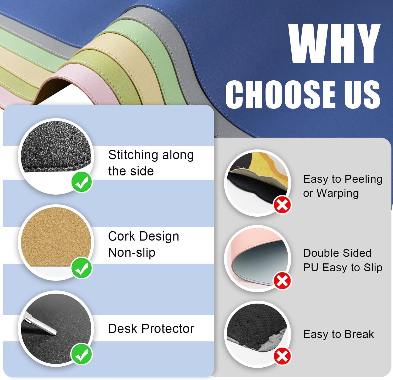 - Superior Protection Mat for Desk: Durable PU leather and cork material, provide reliable protection for your desk surface. Safeguard your tabletop from everyday wear and tear with our Dual-Sided Desk Pad. This large mouse pad and desk mat combo is a protective barrier, preventing scratches, scuffs, and spills from damaging your workspace.