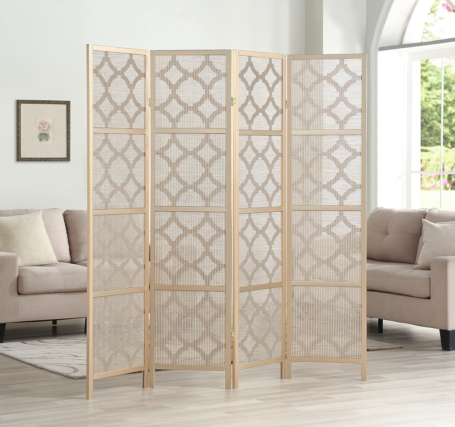 NicBex Room Divider 4 Panel Room Dividers with Quarterfoil Diamond Design Partition Room Dividers and Folding Privacy Screens Wall Divider for Home, Room Separation,69.28"W x 17.32"D x 70.31"H, Gold