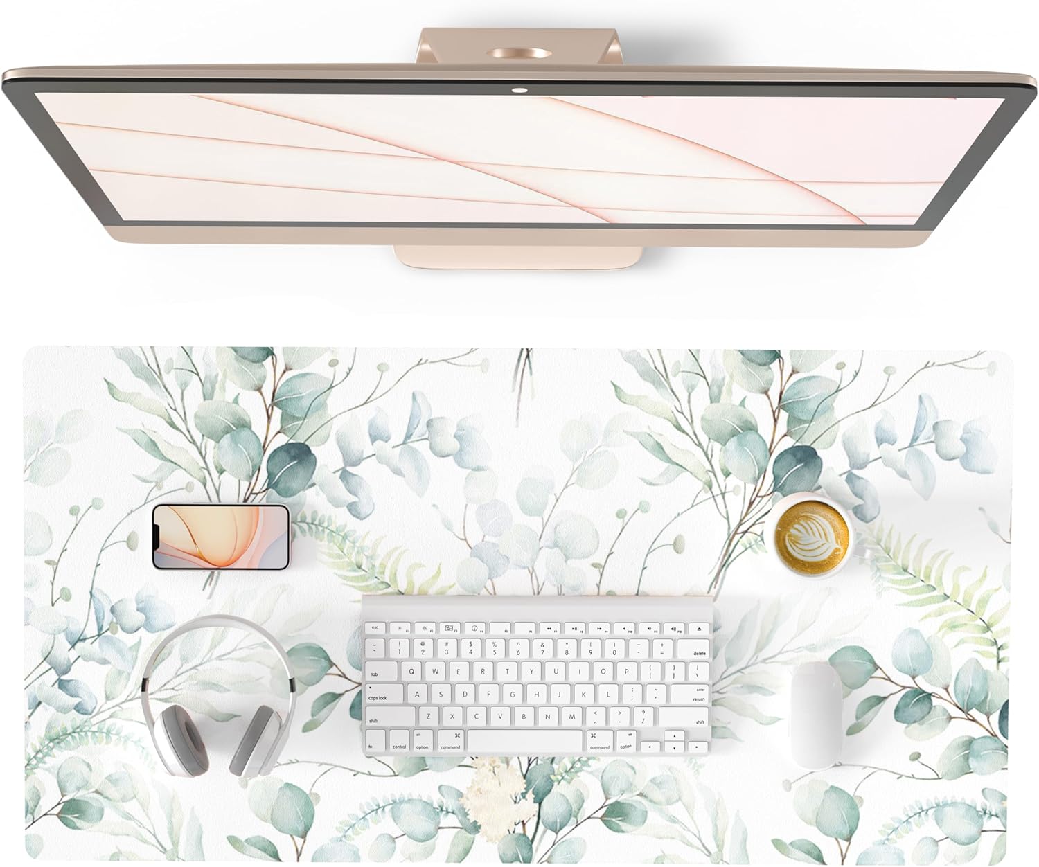 QIYI Large Mouse Pad for Desk, Cute Desk Mat for Desktop, Women Girls Green Office Décor Desk Accessories, PU Leather Waterproof Gaming Mousepad, Eucalyptus Leaf Desk Pad Computer Mat, 31.5" x 15.7"