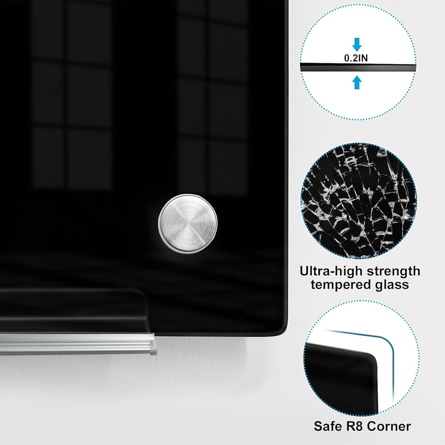 - TEMPERED GLASS BLACKBOARD: Our 48" x 36" black dry erase board is made of ultra-high strength tempered glass. So that black whiteboard can resist scratches and dents, extended service life