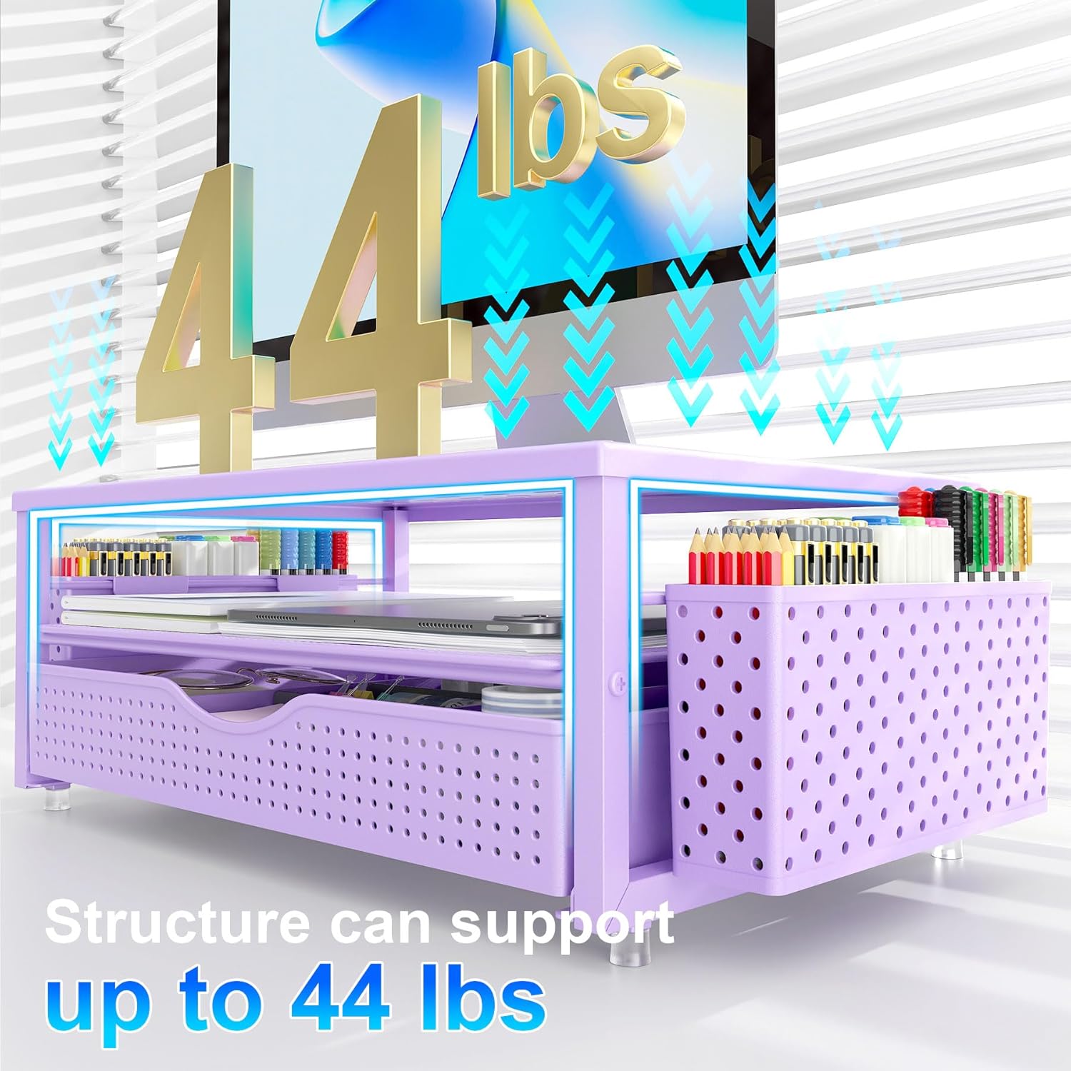 gianotter Desk Organizers and Accessories, Monitor Stand with Drawer and 2 Pen Holder, Purple Desk Accessories, Computer Stand Suitable for Offices and Dormitories (Purple)