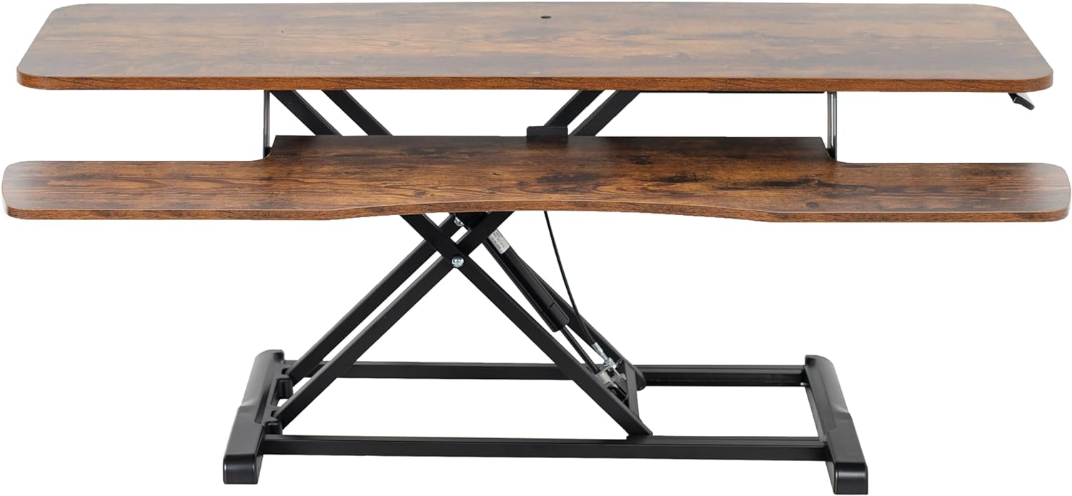 VIVO 48 inch Desk Converter, K Series, Height Adjustable Sit to Stand Riser, Dual Monitor and Laptop Workstation with Wide Keyboard Tray, Rustic Vintage Brown Top, Black Frame, DESK-V048KN