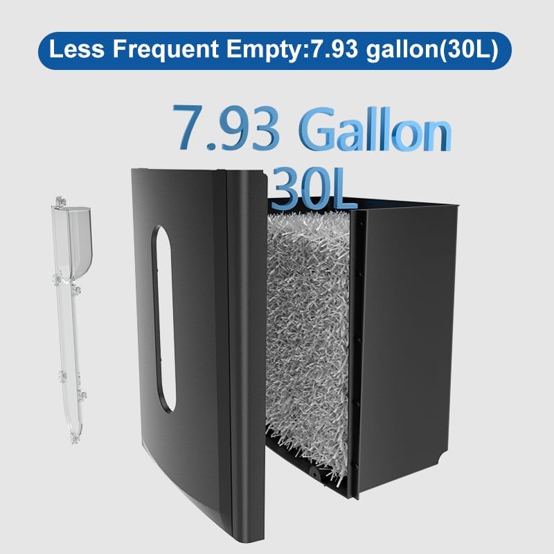 - Reliable Customer Service Support】Heavy duty shredder with 7.93 Gallons pull out drawer bin and hold 1000 sheets that offer less frequent and easy emptying.Transparent window helps to see when it is full.If any usage questions or non-working, contect us to replace within 1 year.