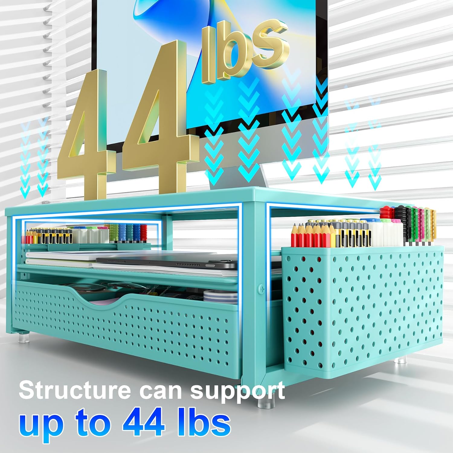 - 【Improved Work Efficiency】: The monitor riser comes with a sliding drawer and two pen holders. It accommodates various office desk items, saving space. It helps you quickly identify the contents of each compartment, doubling your work speed.