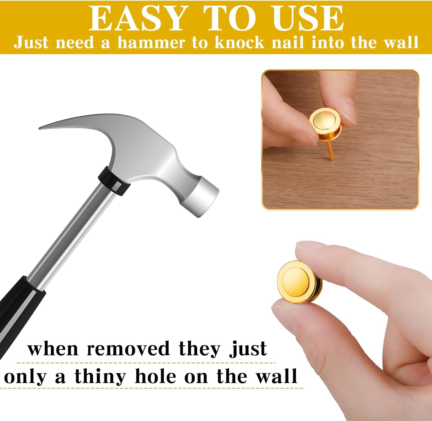 - Easy to Use: these wall tacks are suitable for wooden walls and drywall, and you can fix the photo hooks on the wall with a small hammer (not included); In addition, these hanging nails will only leave a small nail hole after removal, which will not ruin your wall or affect the beauty of the whole house