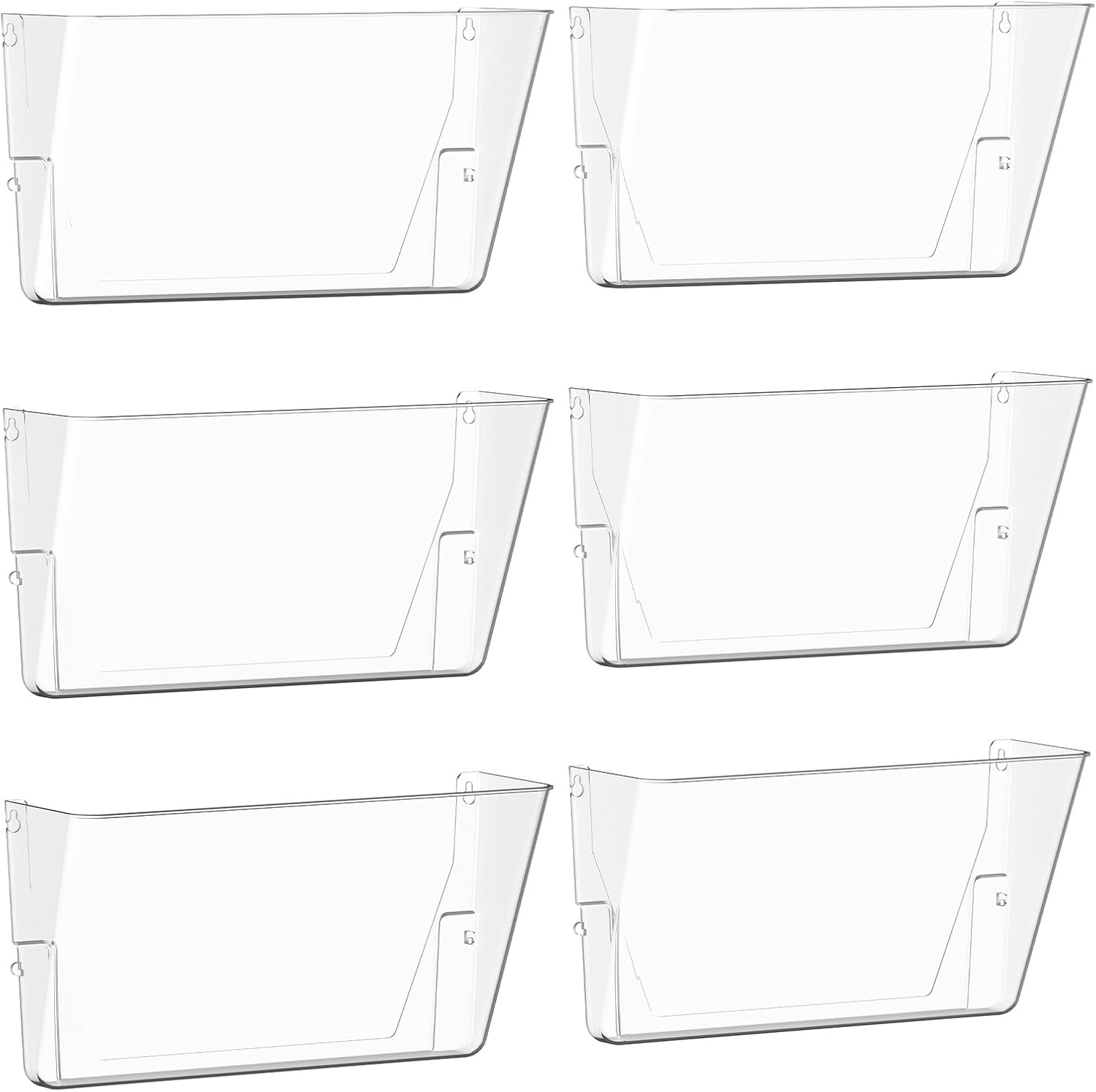 6 Pack Clear Acrylic Single Pocket, Plastic Hanging Wall Mount File Holder for Office Home, Clear