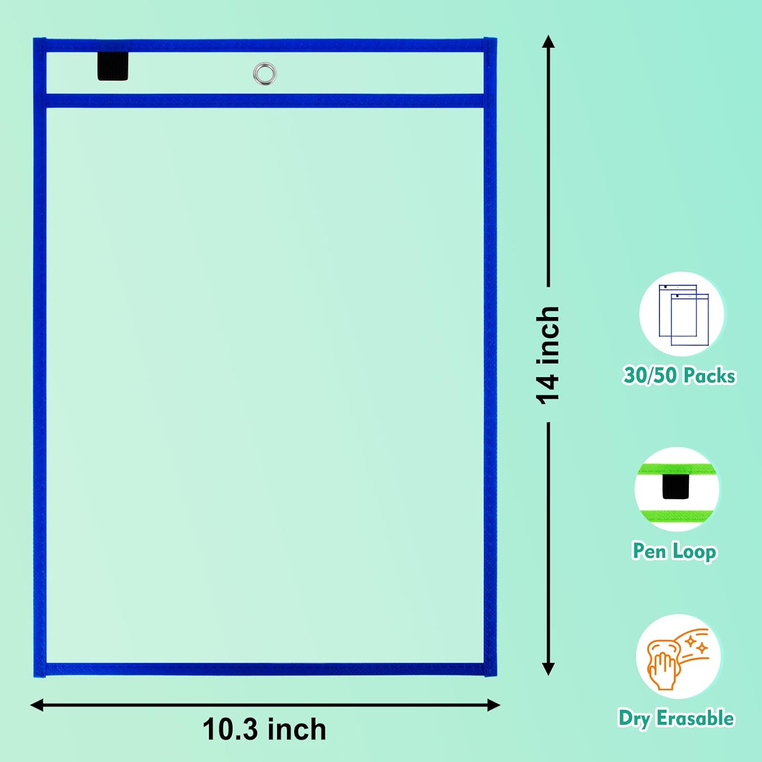 - Pre-drilled hole convenient suspension, one pen loop is on the top of dry erase pocket sleeves. Attention: we don't provide rings.