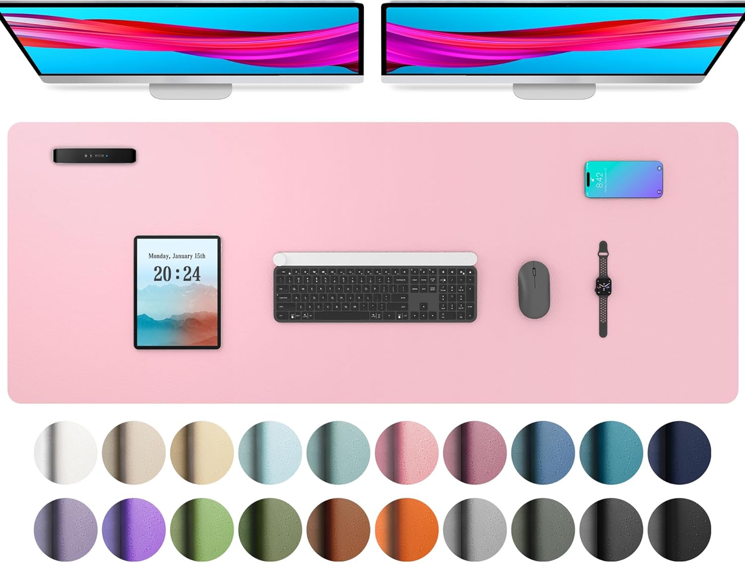 Aothia Leather Desk Pad Protector, Office Desk Mat, Large Mouse Pad, Non-Slip PU Leather Desk Blotter, Laptop Desk Pad, Waterproof Desk Writing Pad for Office and Home (48"x17", Fairy Pink)