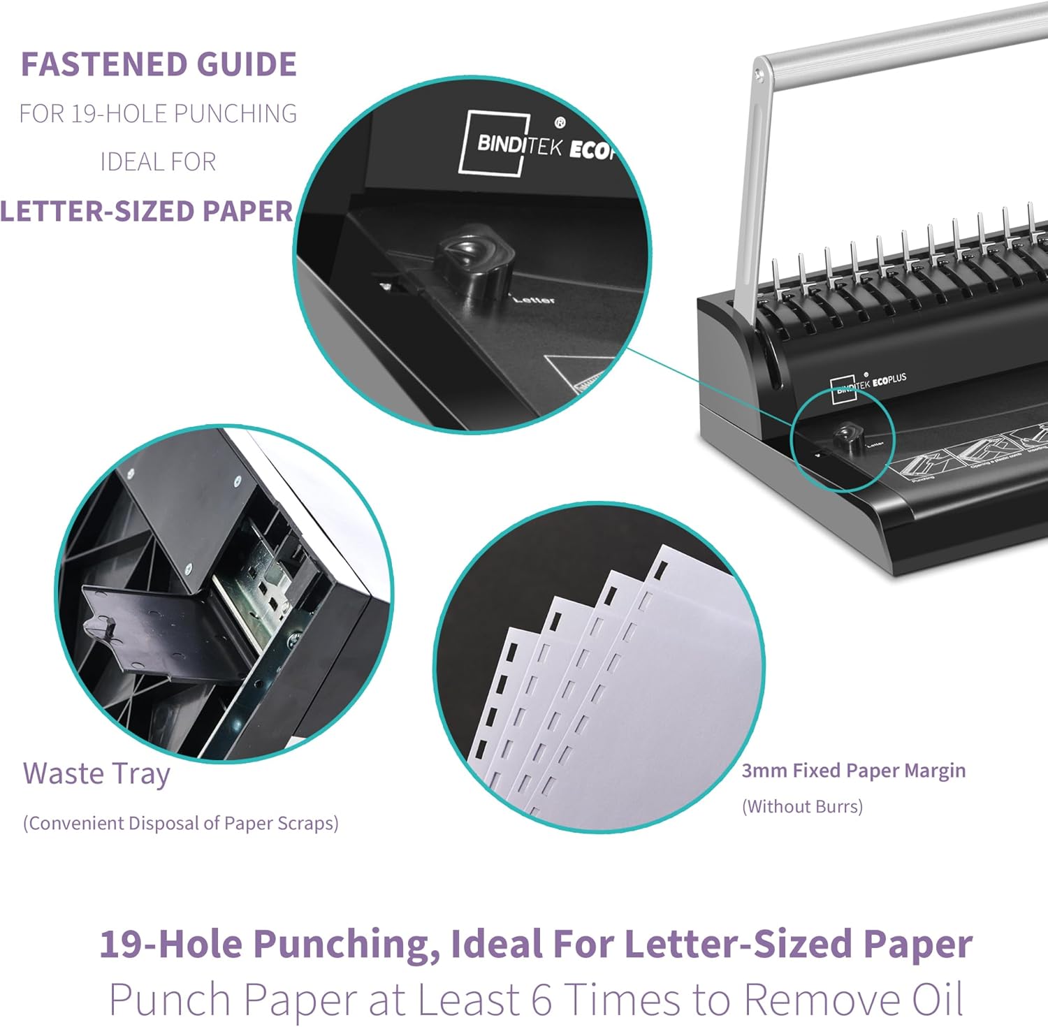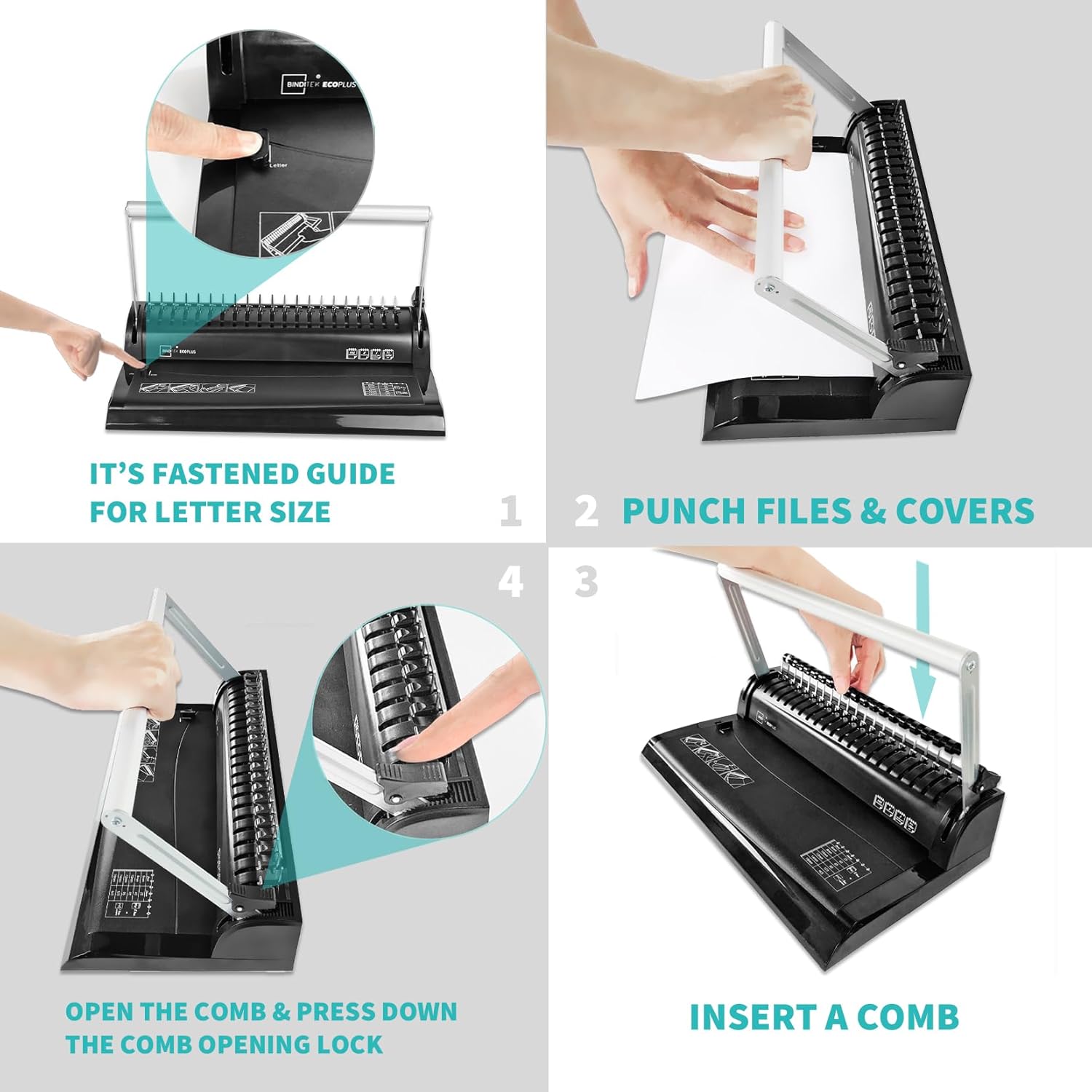 - 【19-Hole Punching, Suitable for Letter-Size Paper】The 19-hole comb binding machine is specifically designed for Letter Size paper. The margin guide is fixed, so it's not recommended to punch other paper sizes, as the hole alignment may not be accurate. Our comb binding machine is built for long-lasting use, delivering consistent performance and professional-quality bound documents.