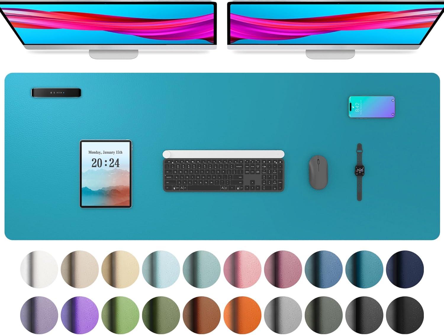 Aothia Leather Desk Pad Protector, Office Desk Mat, Large Mouse Pad, Non-Slip PU Leather Desk Blotter, Laptop Desk Pad, Waterproof Desk Writing Pad for Office and Home (48"x17", Turquoise)