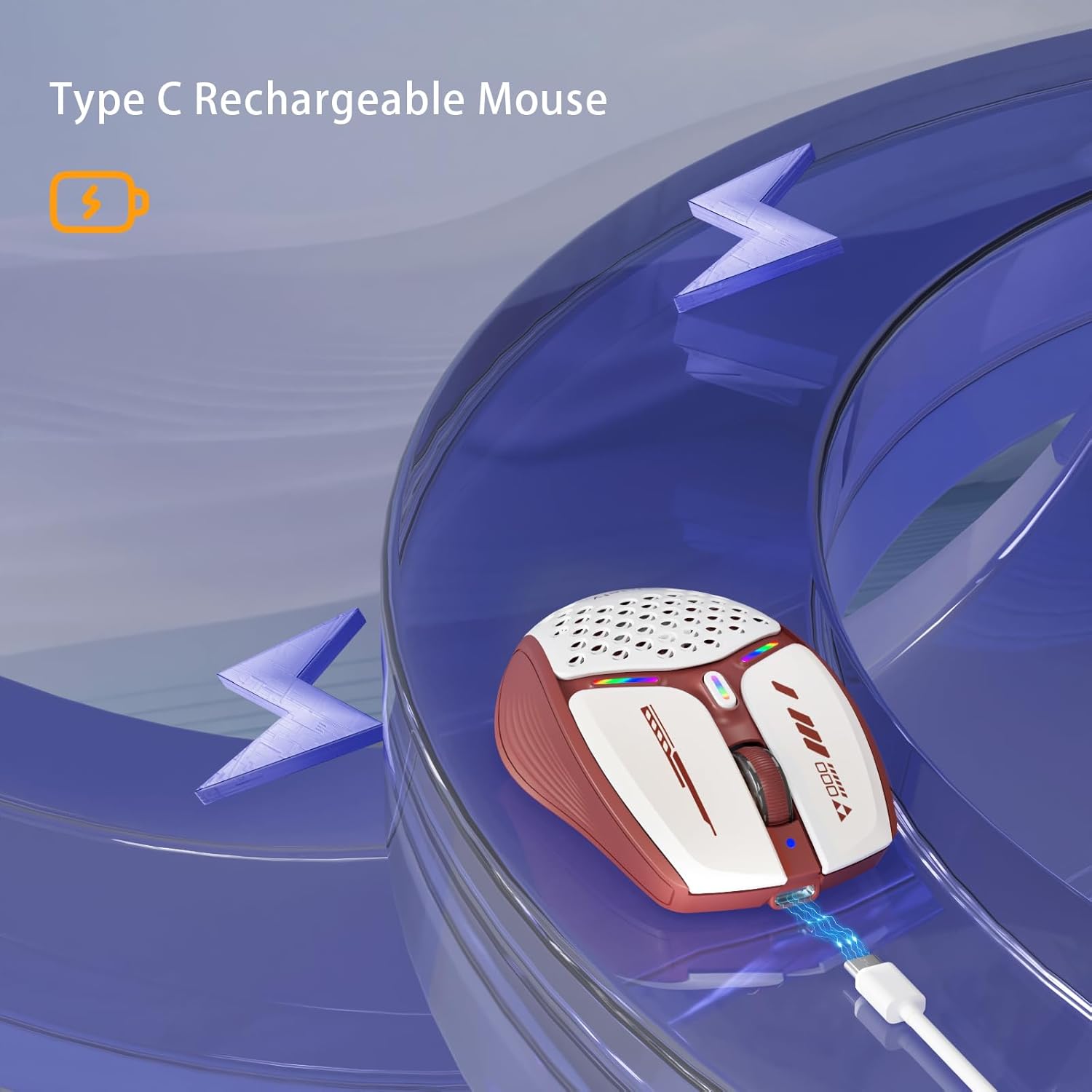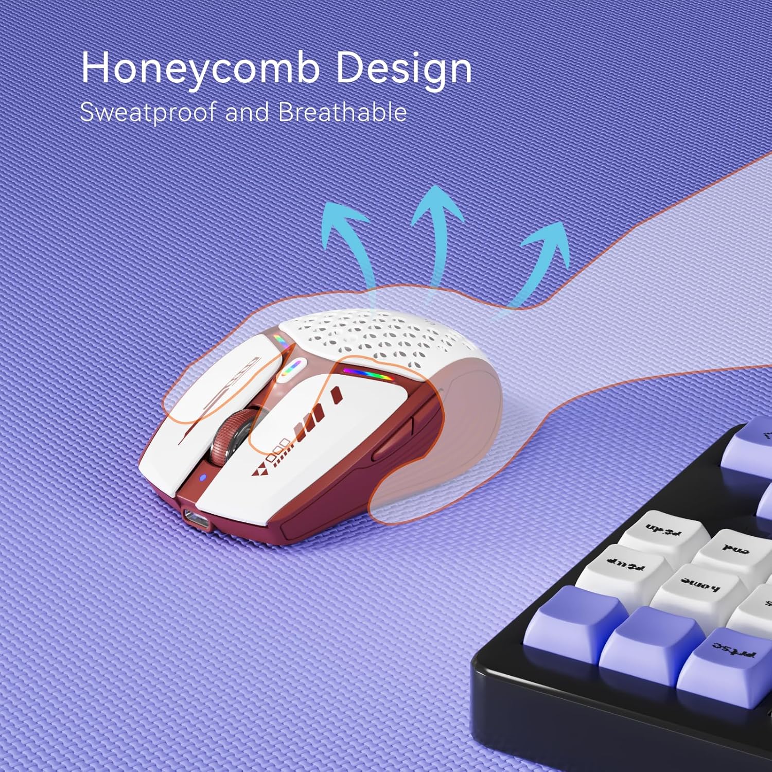 - INNOVATED HONEYCOMB & MAGNETIC COVER DESIGN:The honeycomb & magnetic cover design of the back shell of the mouse not only has a beautiful and unique mecha-style appearance but also has a very practical function with breathable heat dissipation, and the USB receiver is stored in the mouse and just needs to remove the magnetic cover and take out. It's convenient, and don't worry about losing your mini USB receiver.