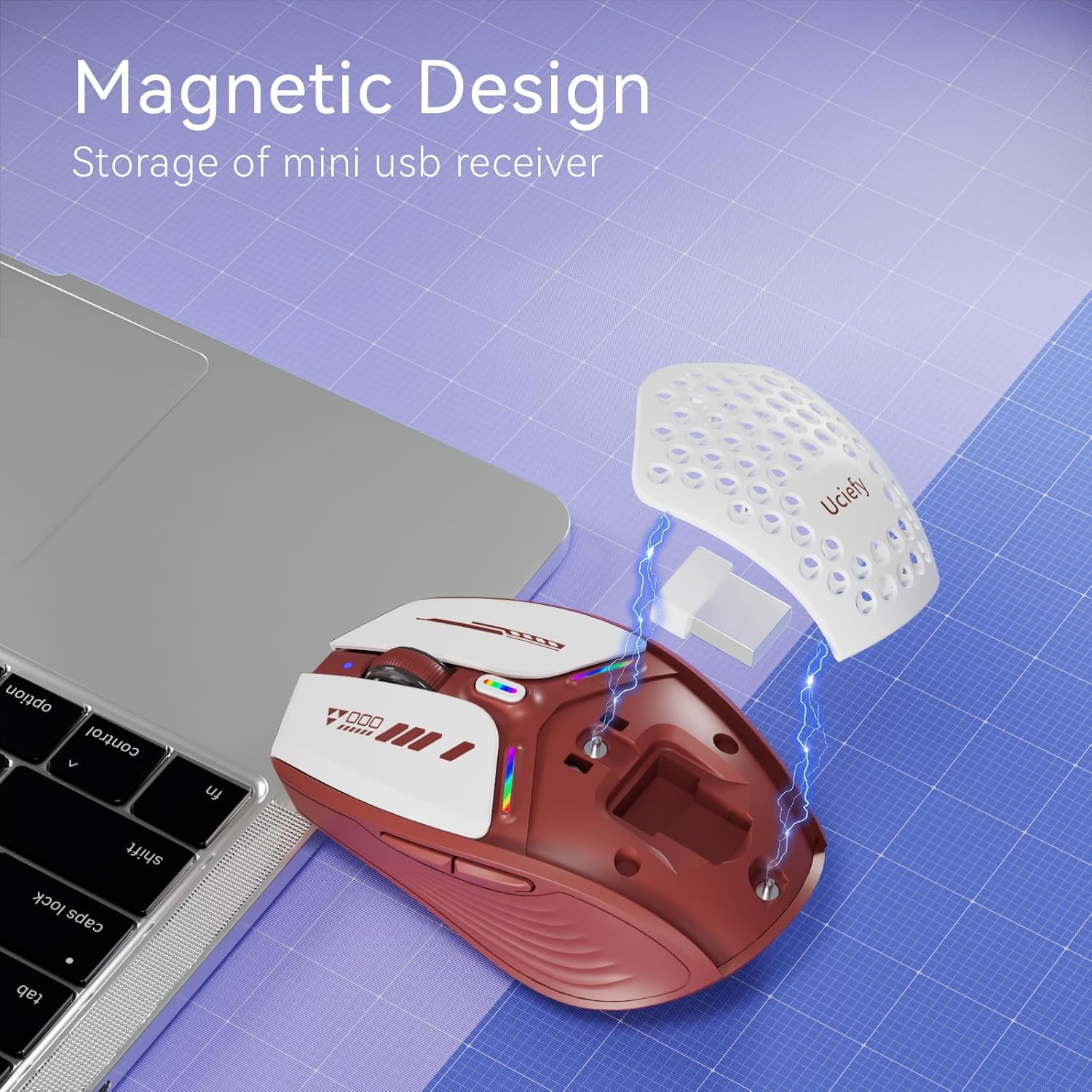 Uciefy Bluetooth Wireless Mouse, (BT5.0/5.1+2.4GHz) USB C Rechargeable LED Mouse Battery Level Visible, Honeycomb Magnetic Shell Cover with USB Receiver & Type-C Adapter for Laptop/PC/Mac/iPad-Red
