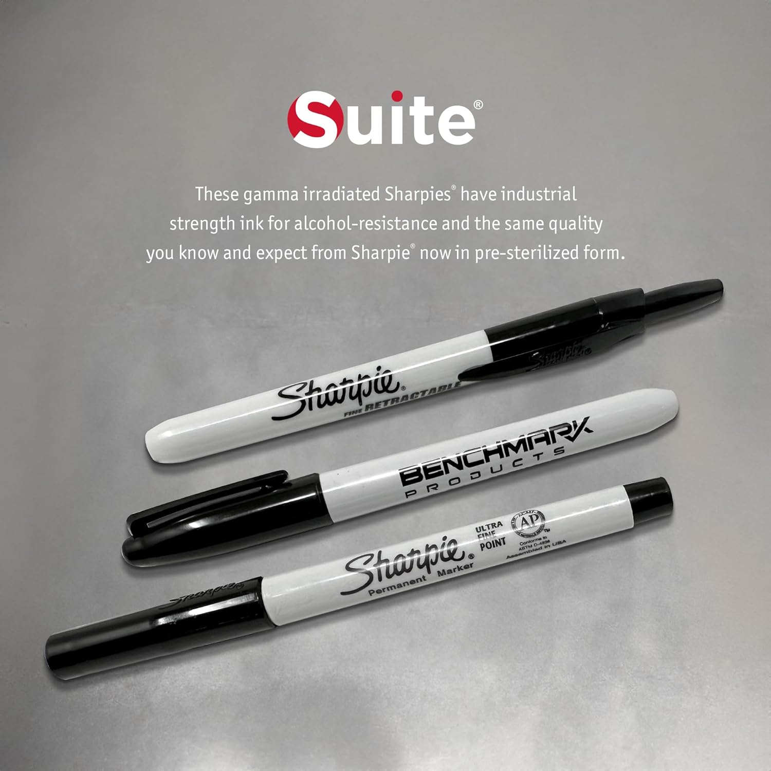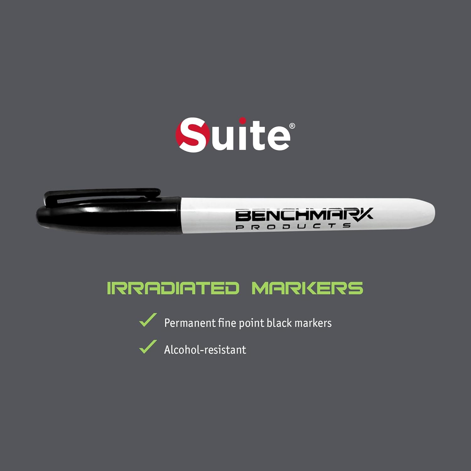 Suite Benchmark Products Permanent Markers, Black, Sterile and Irradiated, 10 Markers/Pack (Retractable)