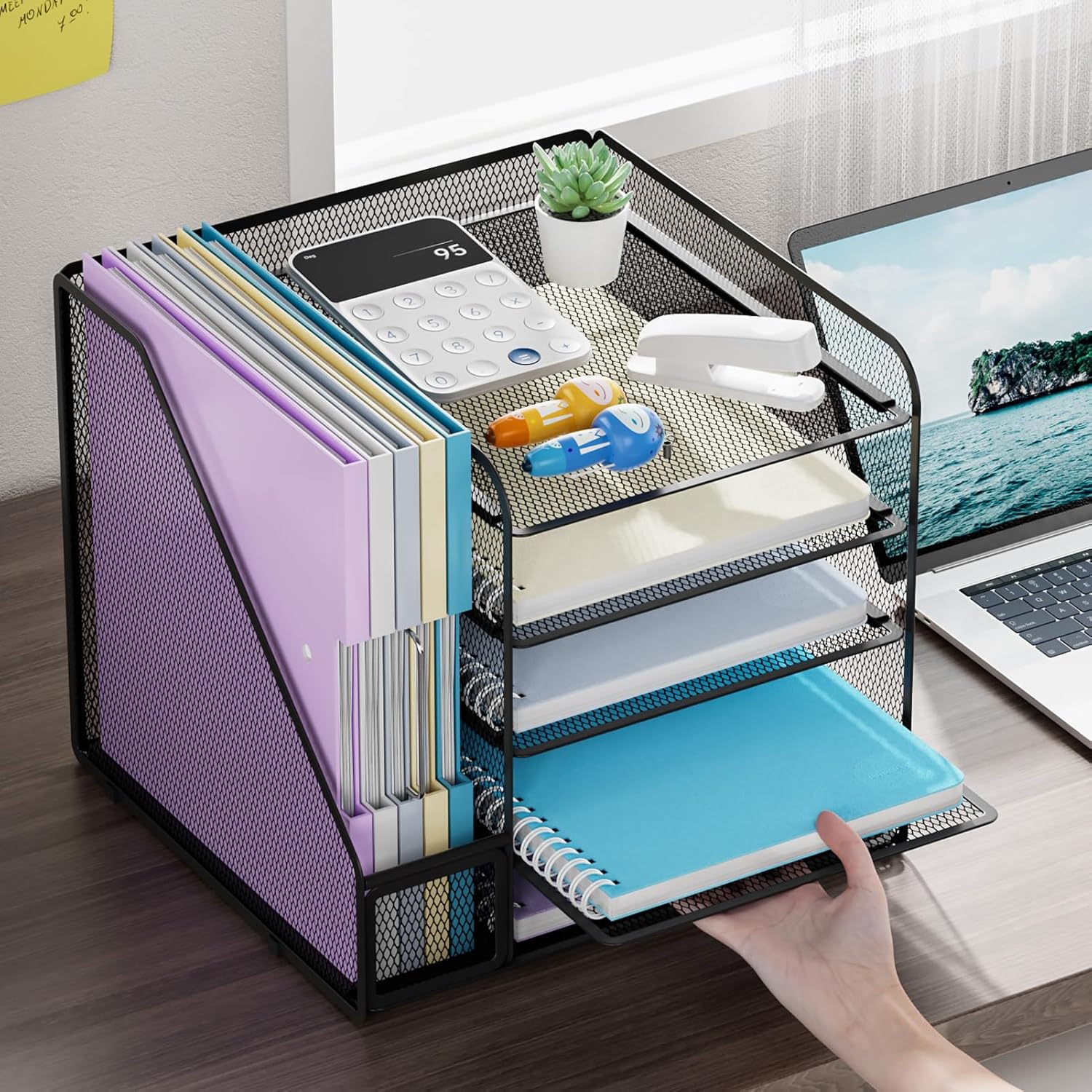 - 【Ideal Desk Organizer】Marbrasse newly releases the desktop file organizer! The humanized office organization owns 5 sliding trays + 1 Magazine Holders which tidies up your desktop and is convenient to your office! All the designs specialized to comply with your office, such a perfect supplies desk organizer must be the best choice for your office accessories