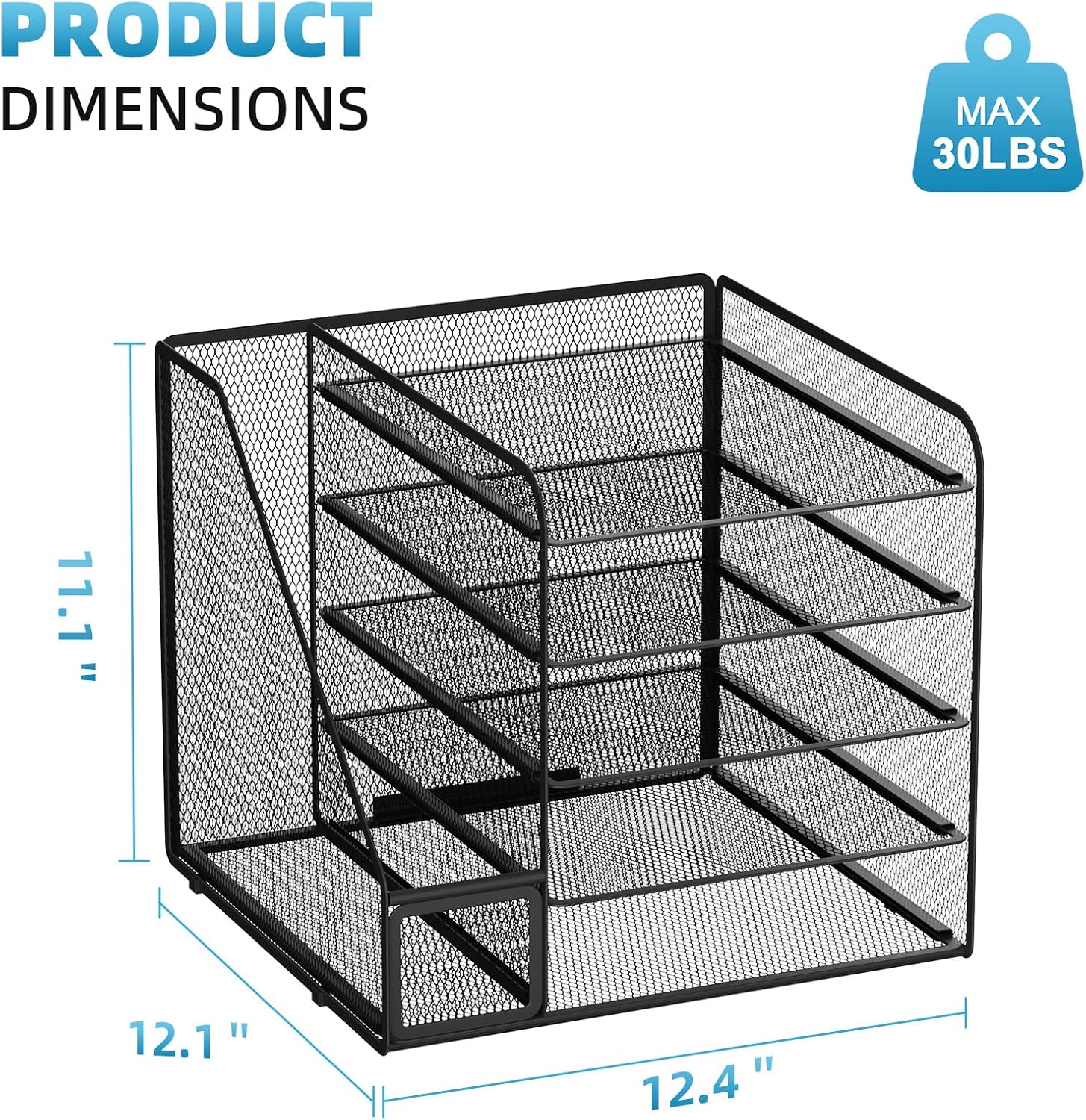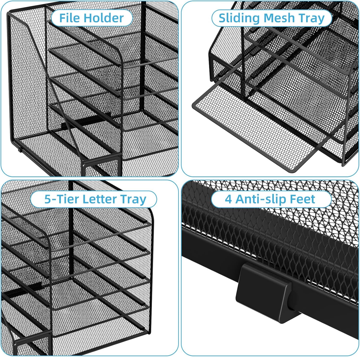 Marbrasse Desk Organizers and Accessories, 5-Tier Paper Letter Tray Organizer with File Holder, Mesh File Organizer, Office Desk Accessories & Organization for Supplies (Black)