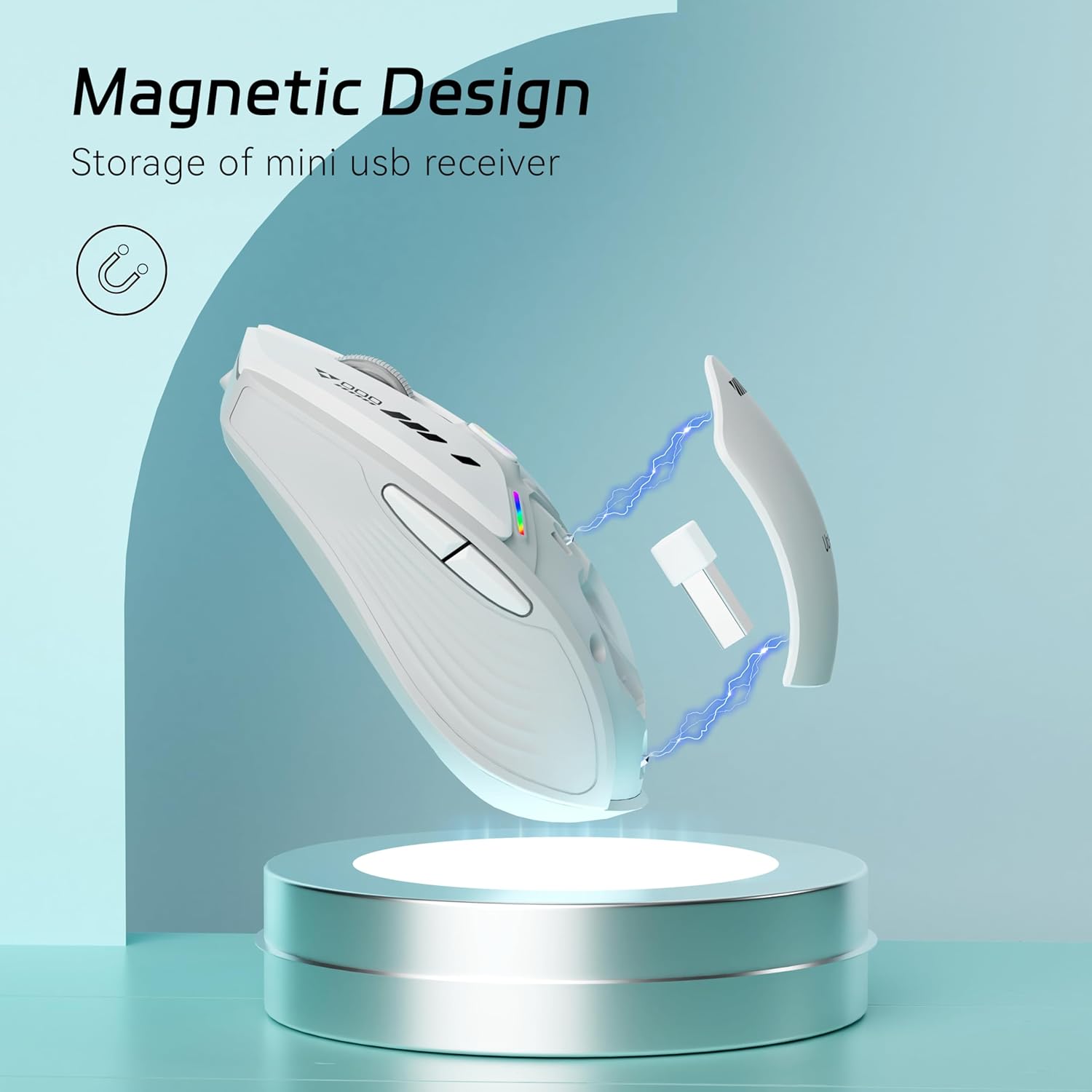 Uciefy V19 Wireless Mouse, 2.4GHz Rechargeable Mouse LED with Battery Indicator, Magnetic Computer Mice with USB Receiver & Type-C Adapter for Laptop/PC/Mac/Chromebook-White