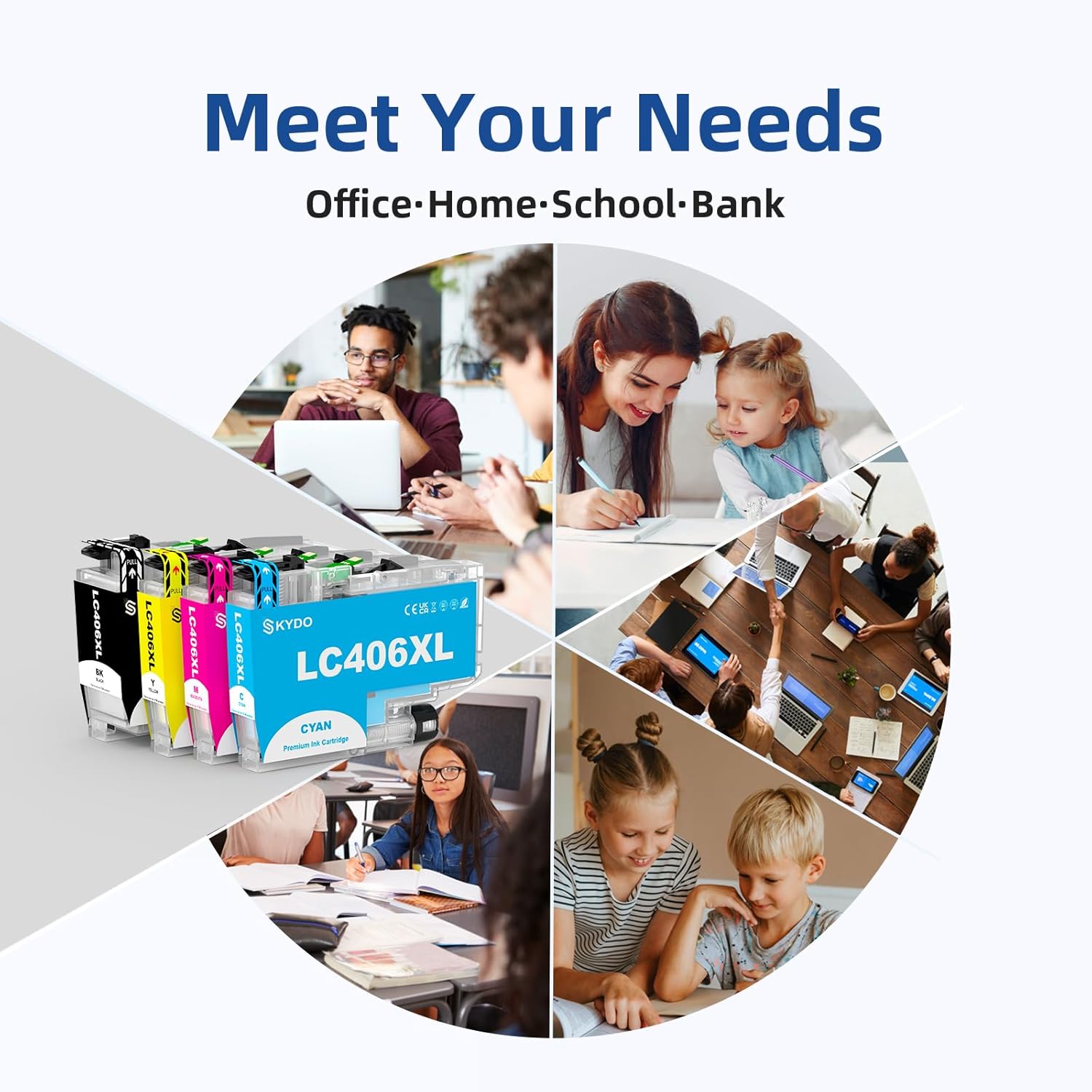 - Product Includes: 4 Combo Pack LC406XL ink, 1 x Black LC406XL Ink Cartridge, 1 x Cyan LC406XL Ink Cartridge, 1 x Magenta LC406XL Ink Cartridge, 1 x Yellow LC406XL Ink Cartridge
