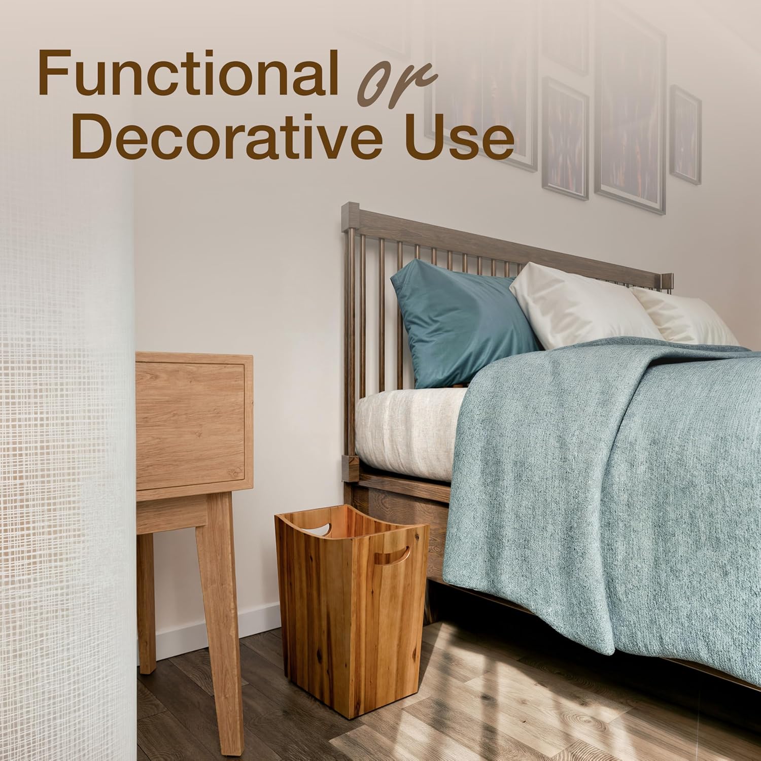 3 Gallons Rectangular Wastebaskets - Acacia Wood Waste Basket with Handles - Small Trash Can for Bathroom - Brown Garbage Bin for Spa Decorative, Kitchen Under Counter, Living Room, Office