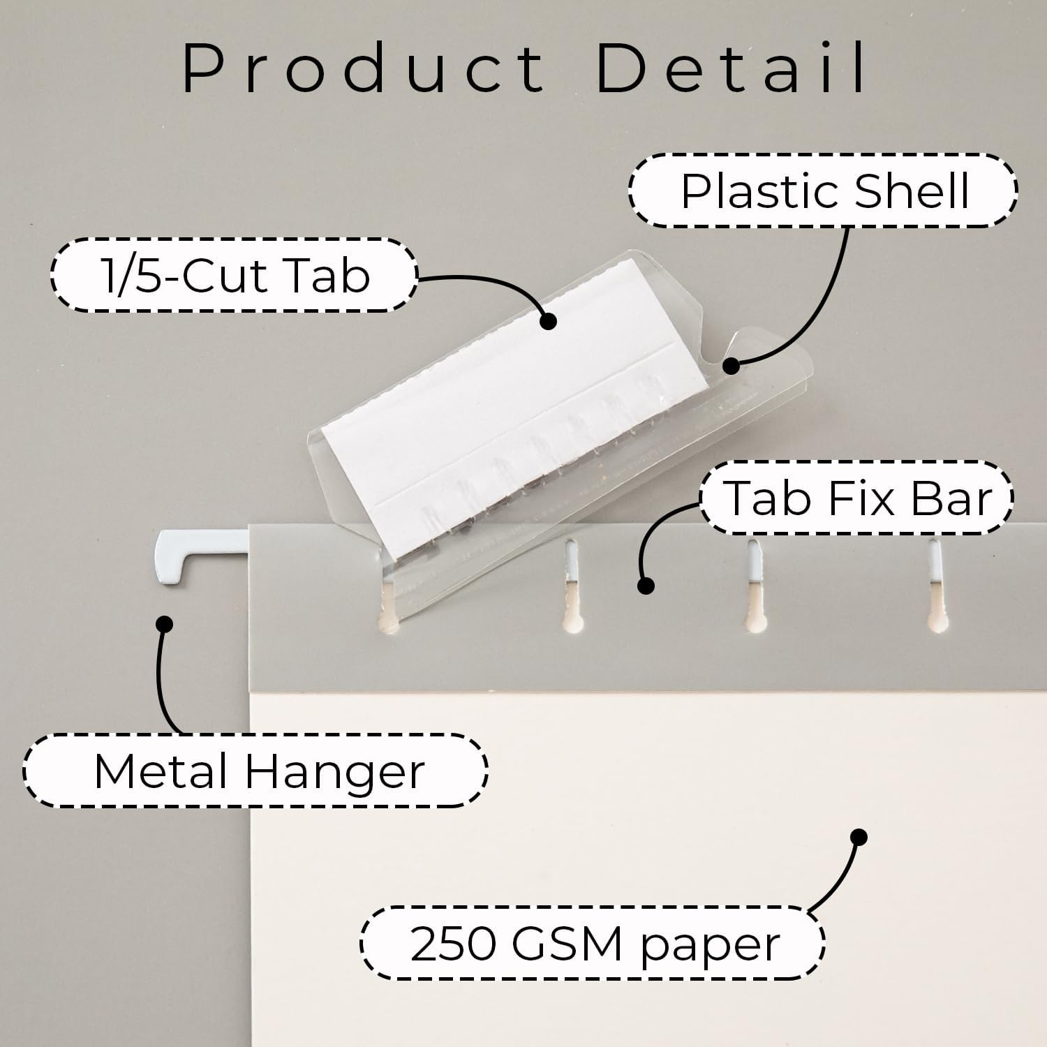 - Sorted Tabs - Each hanging folder features a 1/5-cut custom tab for hassle-free organizing and access to documents. Our pretty hanging folder can store bulky files, medical charts, or product manuals and keep files separate
