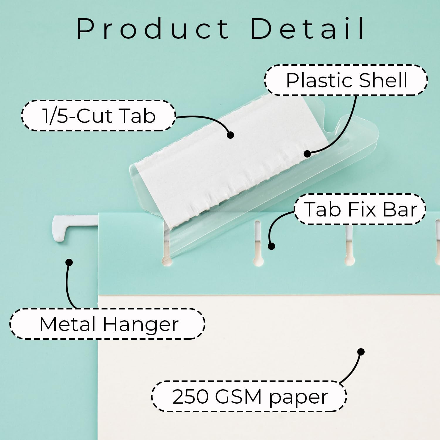 - Sorted Tabs - Each hanging folder features a 1/5-cut custom tab for hassle-free organizing and access to documents. Our pretty hanging folder can store bulky files, medical charts, or product manuals and keep files separate