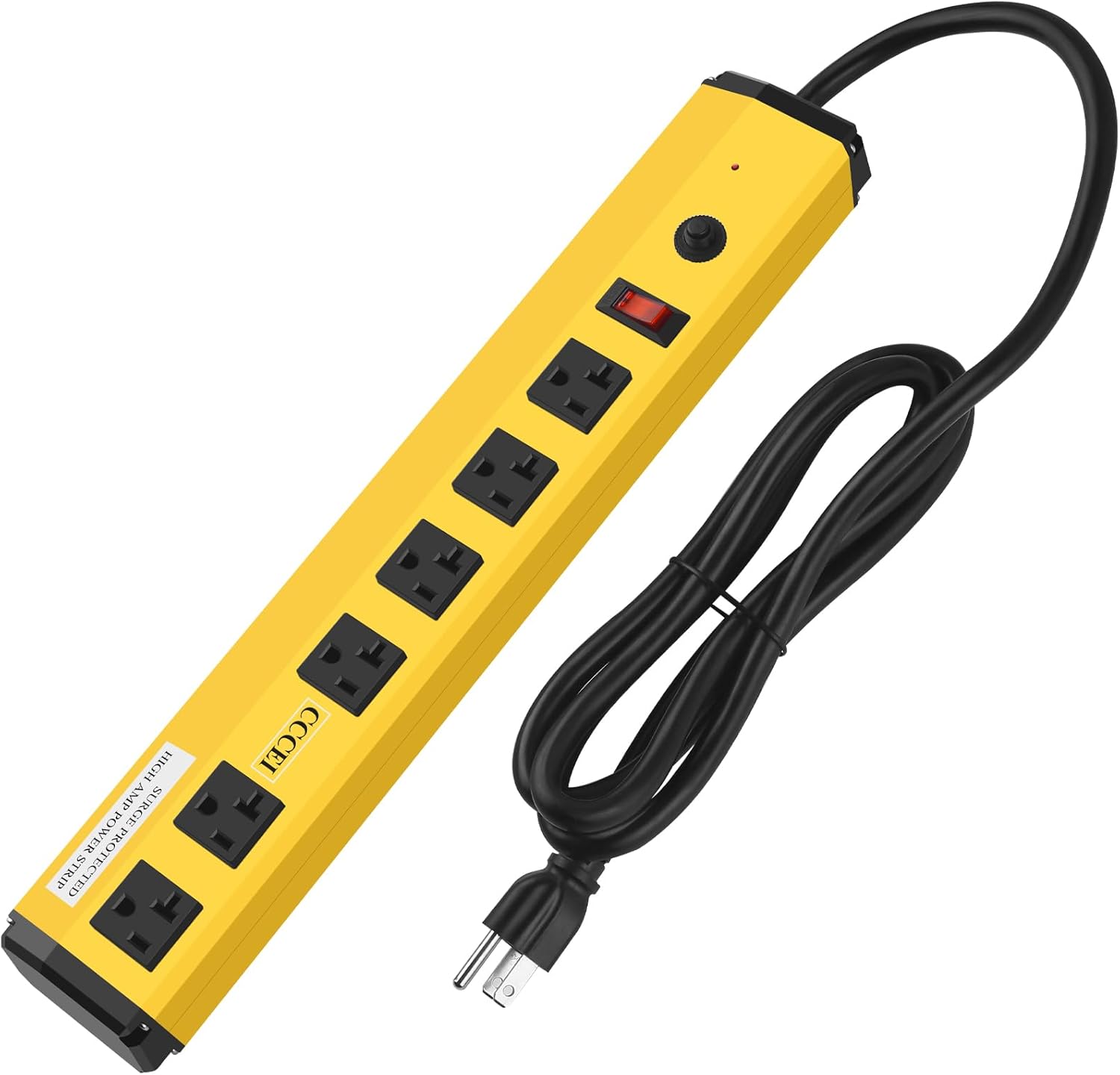 CCCEI Heavy Duty Power Strip Surge Protector 20 Amp, High Amp Industrial Shop Garage Metal Multiple Outlets, 4 FT 12 Gauge 5-15P Extension Cord 6 Outlet 6-20R T-Slot 20a for Appliance, Yellow.