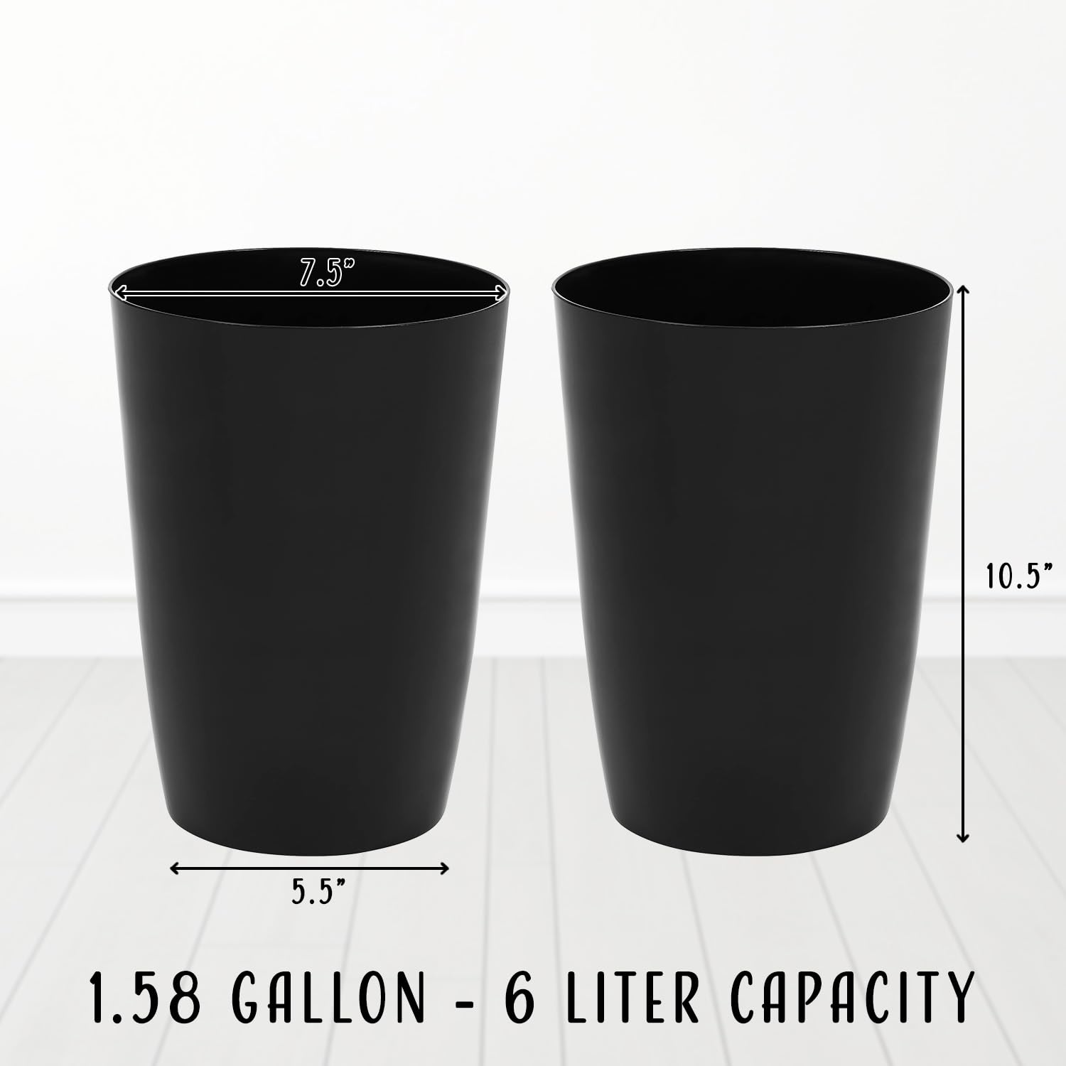 HOLDN’ STORAGE Small Trash Can - Set of 2 Open Top Waste Bin of 1.58 Gallon, Compact Waste Can Perfect for Bathroom, Kitchen, Office, Dorm - Durable Garbage Can - Glossy Black