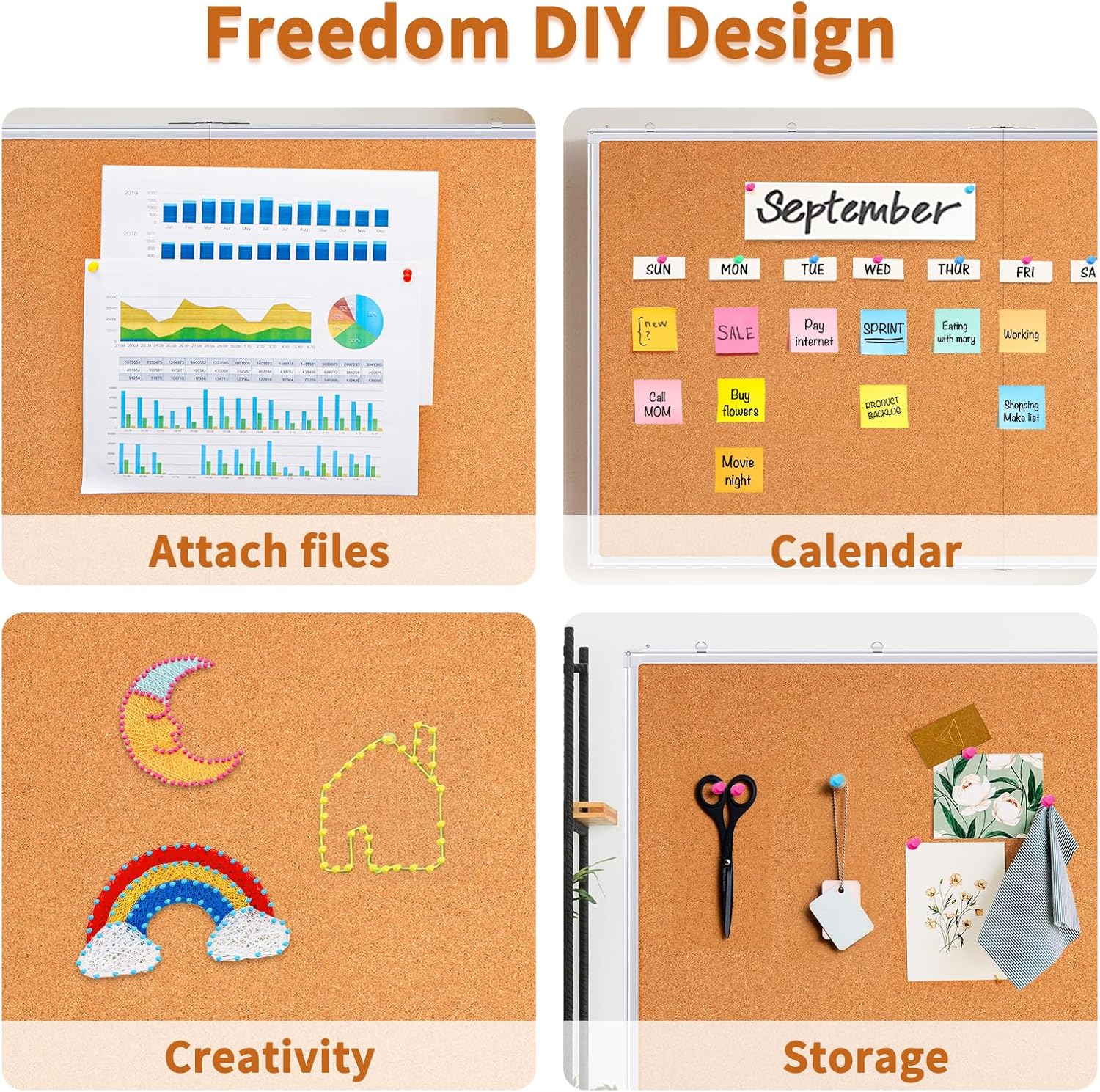 - Premium Quality & Self-Healing Cork Surface: Made of 10mm thick natural cork layer which's dense and durable. The high-quality cork has a self-healing ability, ensuring long-lasting use. Meanwhile, the frame is made of high-quality aluminum alloy, which is strong and not easy to deform.