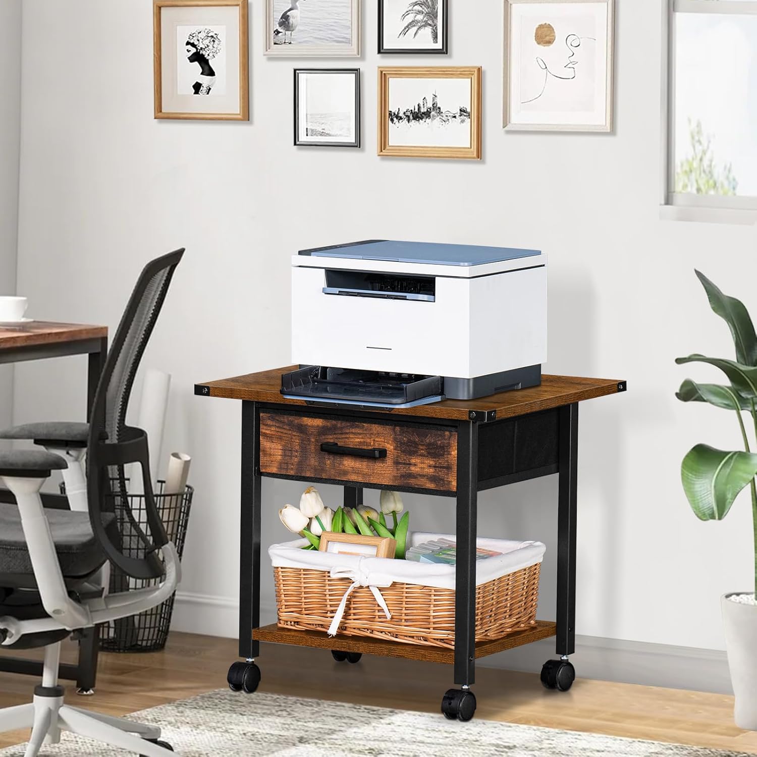 - [Large Printer Stand] 20.08 "L X 15.75''W Extra large desktop can hold different sizes of printers. The fabric drawer and bottom shelf provide extra storage space. You can place it on the desktop or underneath the table for easy access. The printer desk stand is so flexible and convenient to effortlessly optimize your desk, living room and kitchen.