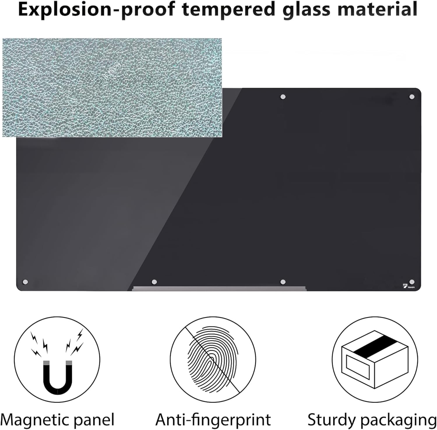 TOWON 8 x 4ft Glass Whiteboard Wall, Black Magnetic White Board Dry Erase 96 x 48 in, Big Glass Dry Erase Board with Multi-Color Markers, Strong Magnets, Pen Tray and Eraser, Frameless