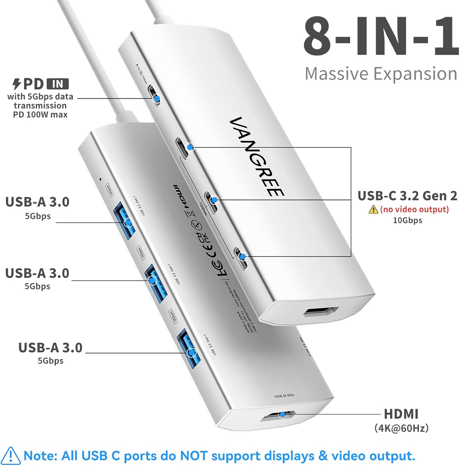 - What You Get: VANGREE Van-01 USB-C Hub (8-in-1), user manual, our worry-free 24-month product care, and friendly customer service. If you have any questions or concerns, please don't hesitate to contact us.