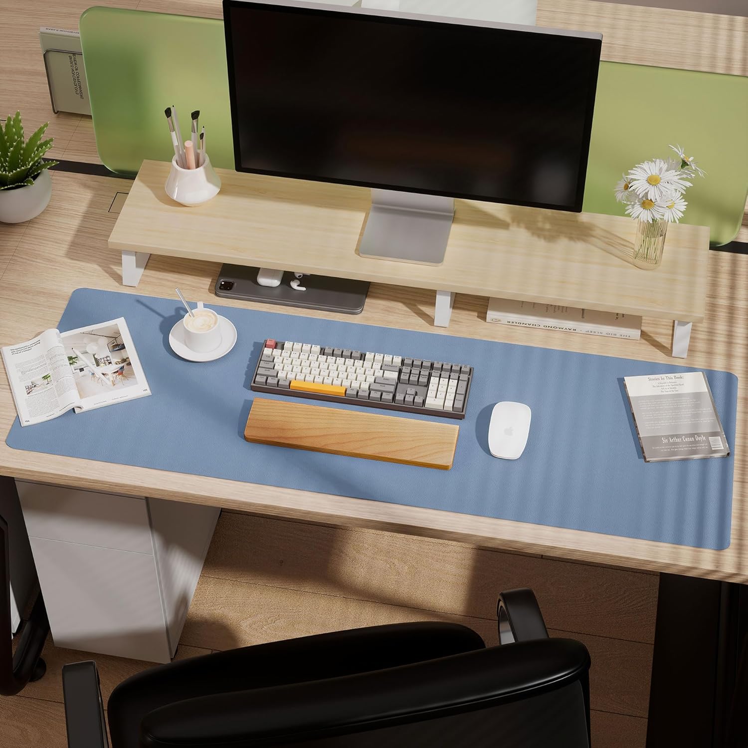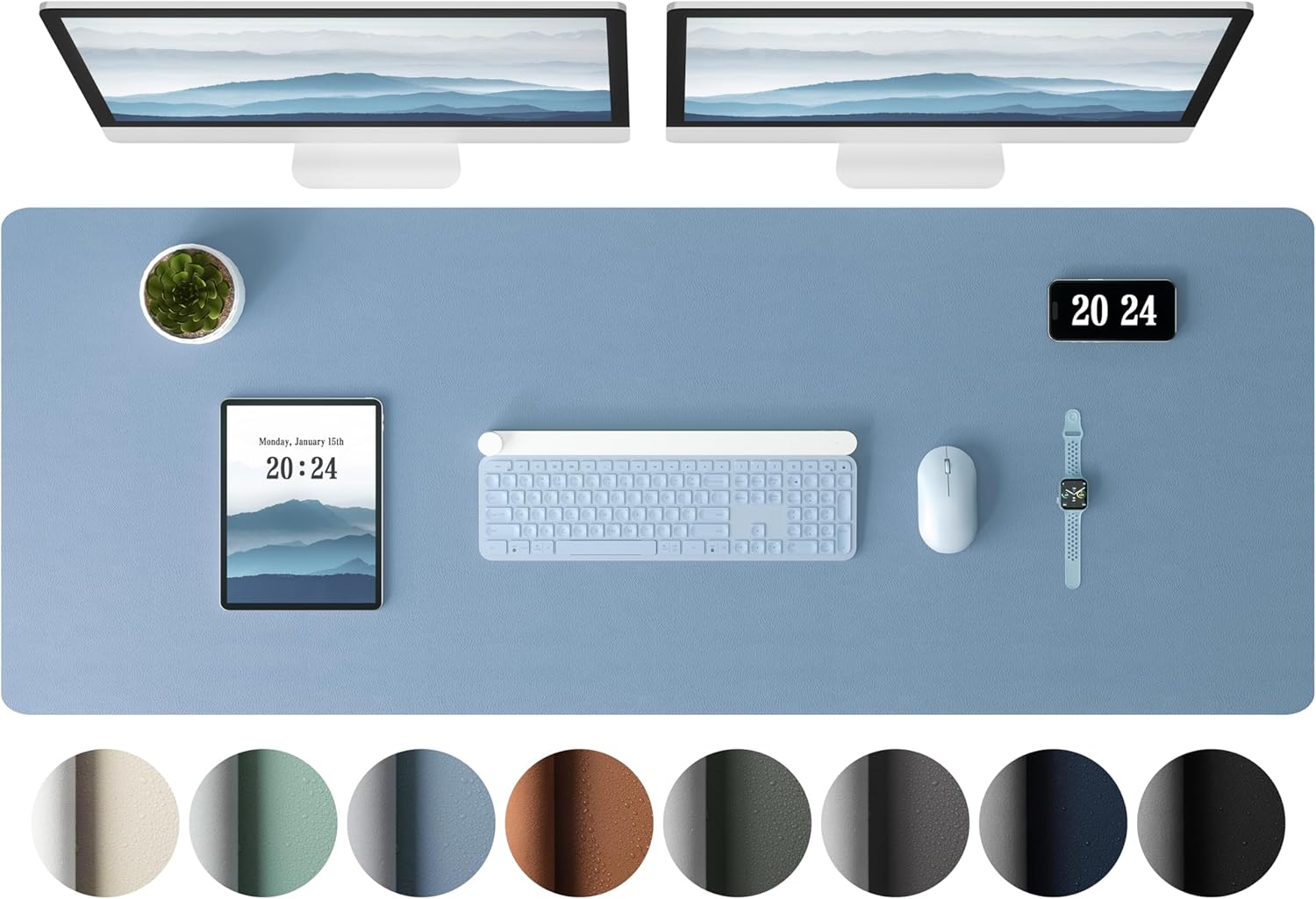 Aothia Leather Desk Pad Protector, Office Desk Mat, Large Mouse Pad, Laptop Desk Pad, Non-Slip PU Leather Desk Blotter, Waterproof Desk Writing Pad for Office and Home (Denim Blue, 47" x 17")