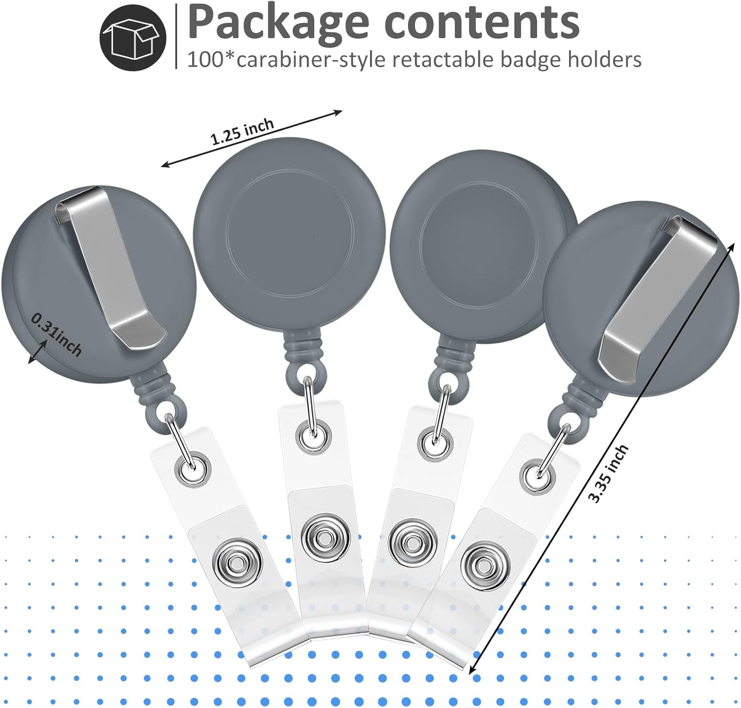 Zonon 100 Pieces Retractable Badge Reel Clips ID Card Holder Reel with Metal Belt Clip for Hanging Cards Key Chains, Name Badge Holders for Nurses Teachers Students(Gray)