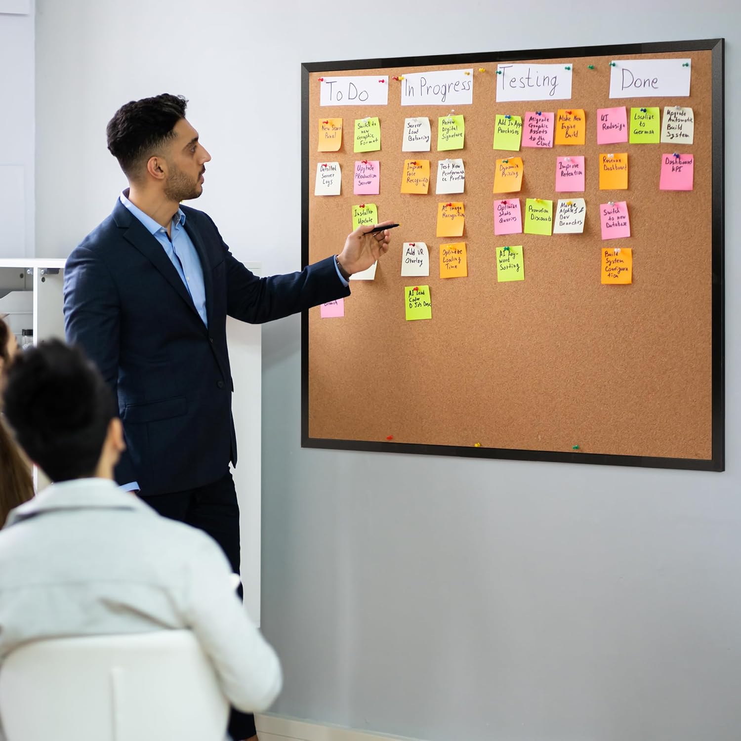 - Oversized & Sturdy: The 48 x 48 inches bulletin board comes with a large displaying area of 46.2 x 46.2 inches, sturdy and stylish black wood finish frame protects tack board while providing you a visual enjoyment, guaranteed not to warp