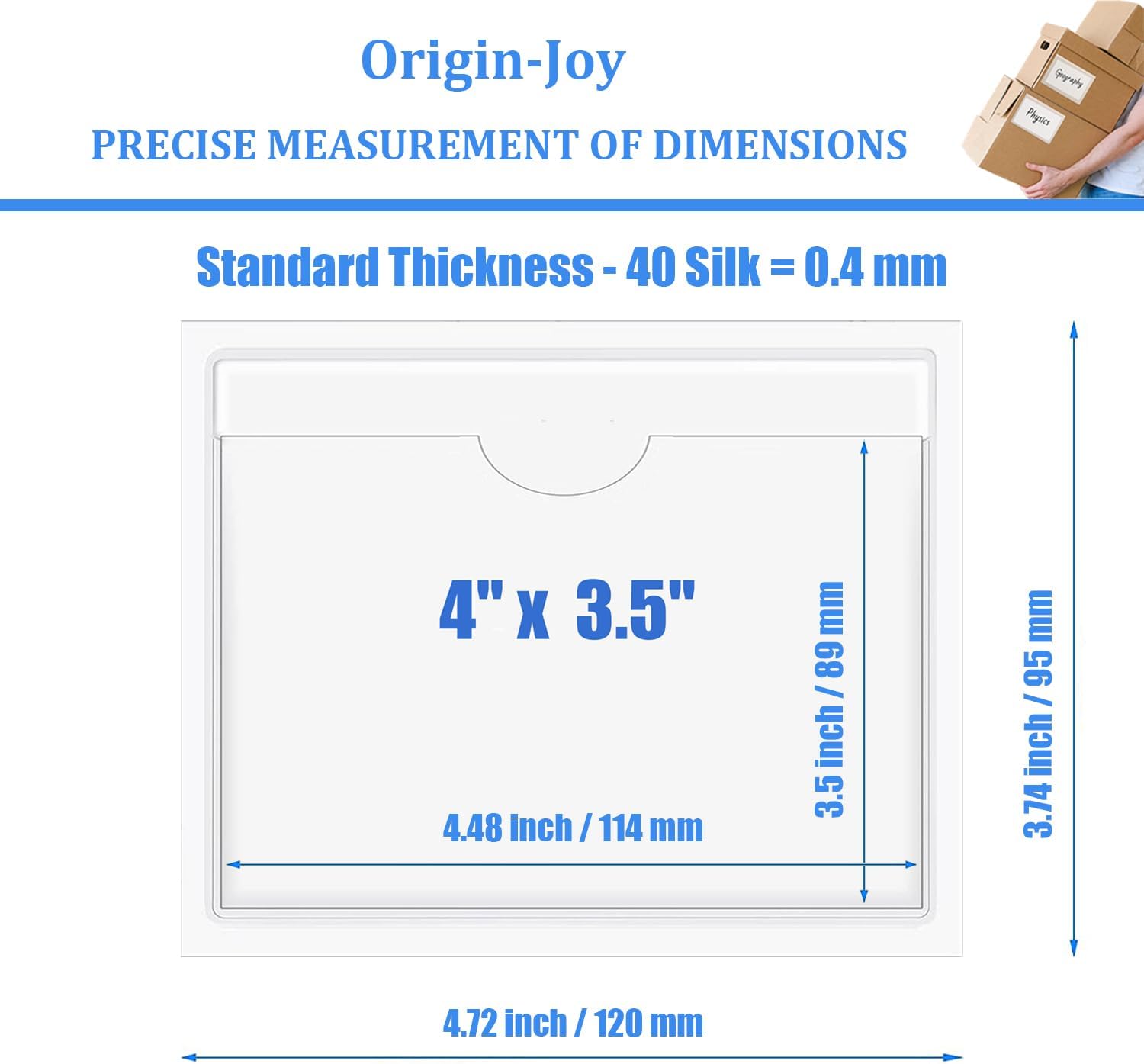 - 【Quality Vinyl Material】Origin-Joy's adhesive index label pockets sleeves are specially customized for customers' common sizes, made from quality vinyl with a self-adhesive backing, the thickness is 40 silk, in keeping lightweight and smooth while having good toughness, not easy to deformation, can be used for a long time.