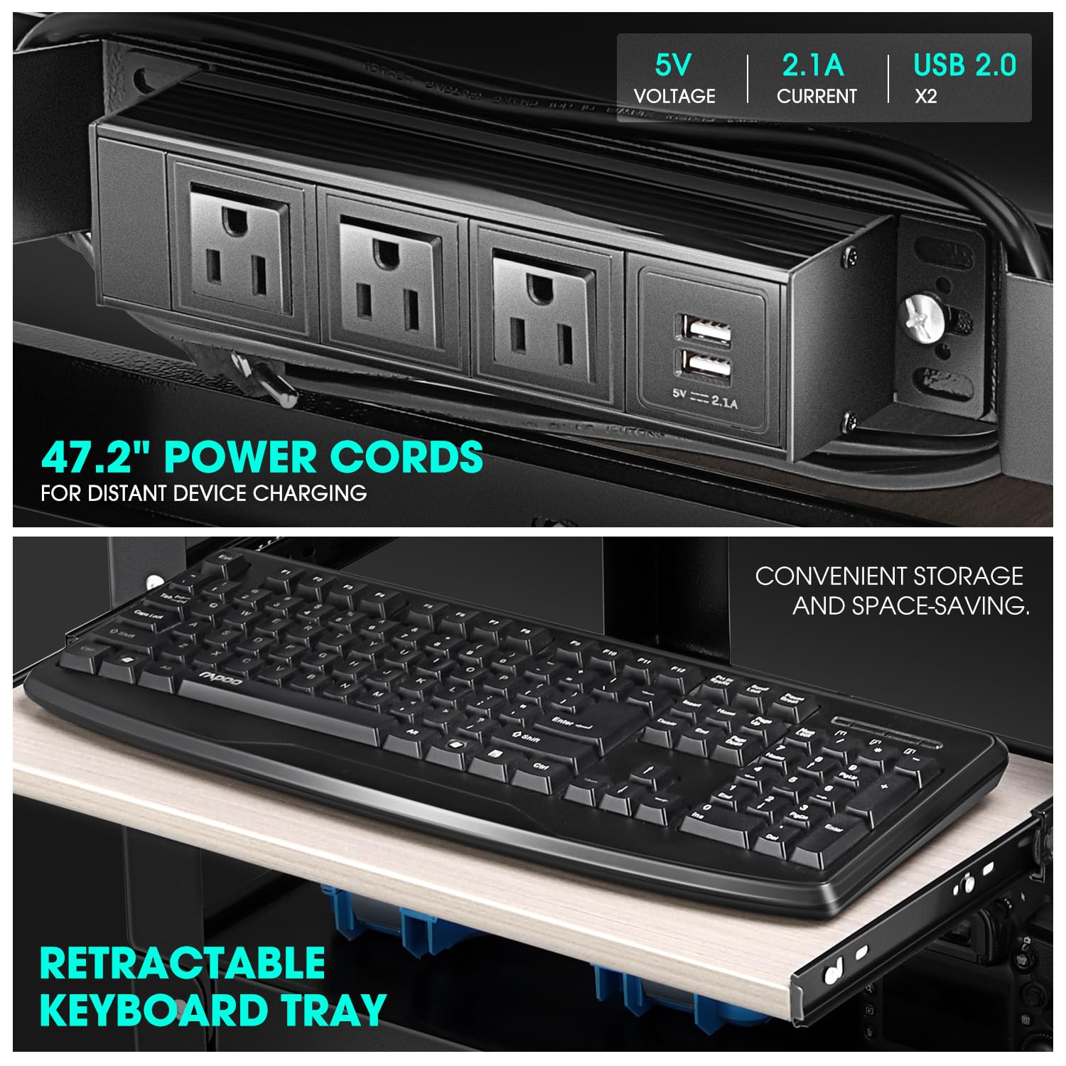 - Special Feature : Adjustable Height, Keyboard Tray, Power Strip, Swivel Casters