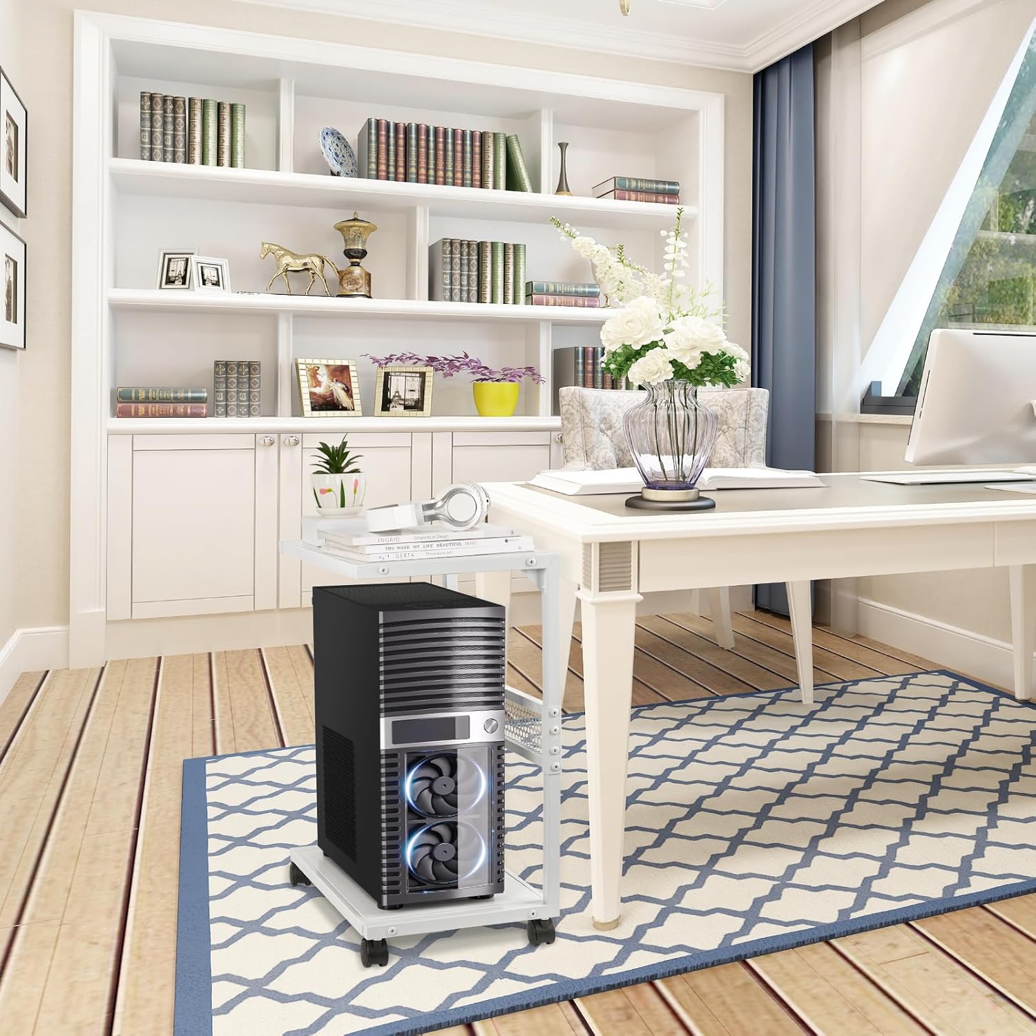 Liitrton PC Tower Stand 2-Tier CPU Stand with Locking Caster Wheels for Office & Home - Iron-White