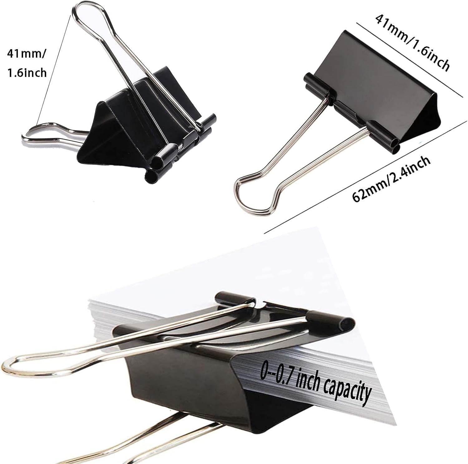 - 【Package Including】48 packs large binder clips, 1.6inch/41mm width, 0.7 inch capacity. They can meet your daily needs.Our large binder clips are perfect for everyday use