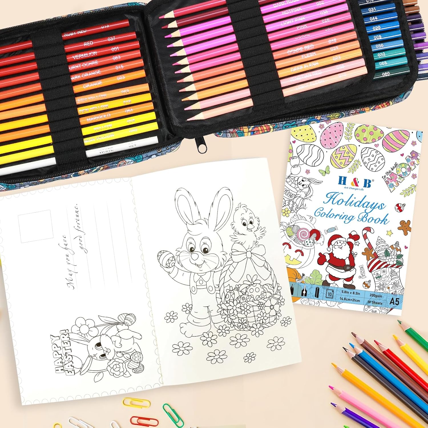 H & B Art Supplies, 72Pack Drawing Supplies for Adults, Drawing Kit with Drawing Book, Coloring Book, Oil-Based Coloured Pencils for Artists