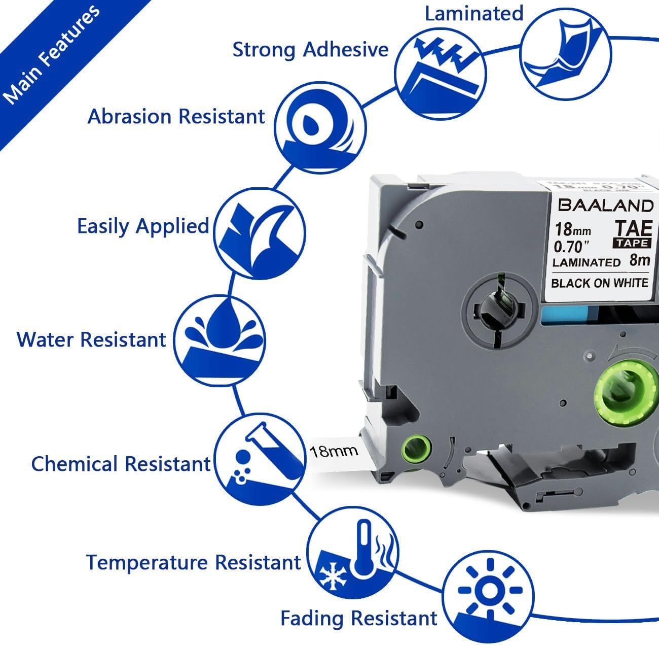 - DURABLE FEATURES - Our tze-241 tz tape 18mm 0.7 laminated white tape features water resistant, grease resistant, abrasion resistant, chemical resistant, higher or lower temperature resistant as well as fade resistant, so it is durable for outdoor or indoor use