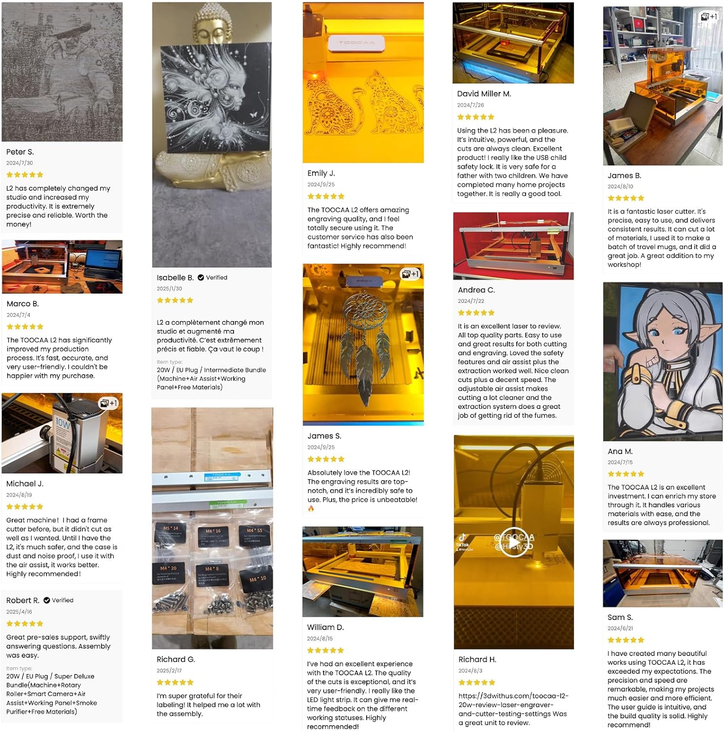 - 【World's 1st USB Child Lock】 When the safety lock is unplugged, the machine will cease to function, thereby preventing children from getting injured due to misoperation. The TOOCAA L2 machine also incorporates numerous excellent safety designs. With patented flame detection, tlt detection, and many other safety features, it safeguards you and your tools in every aspect, allowing you to focus on creation and production.