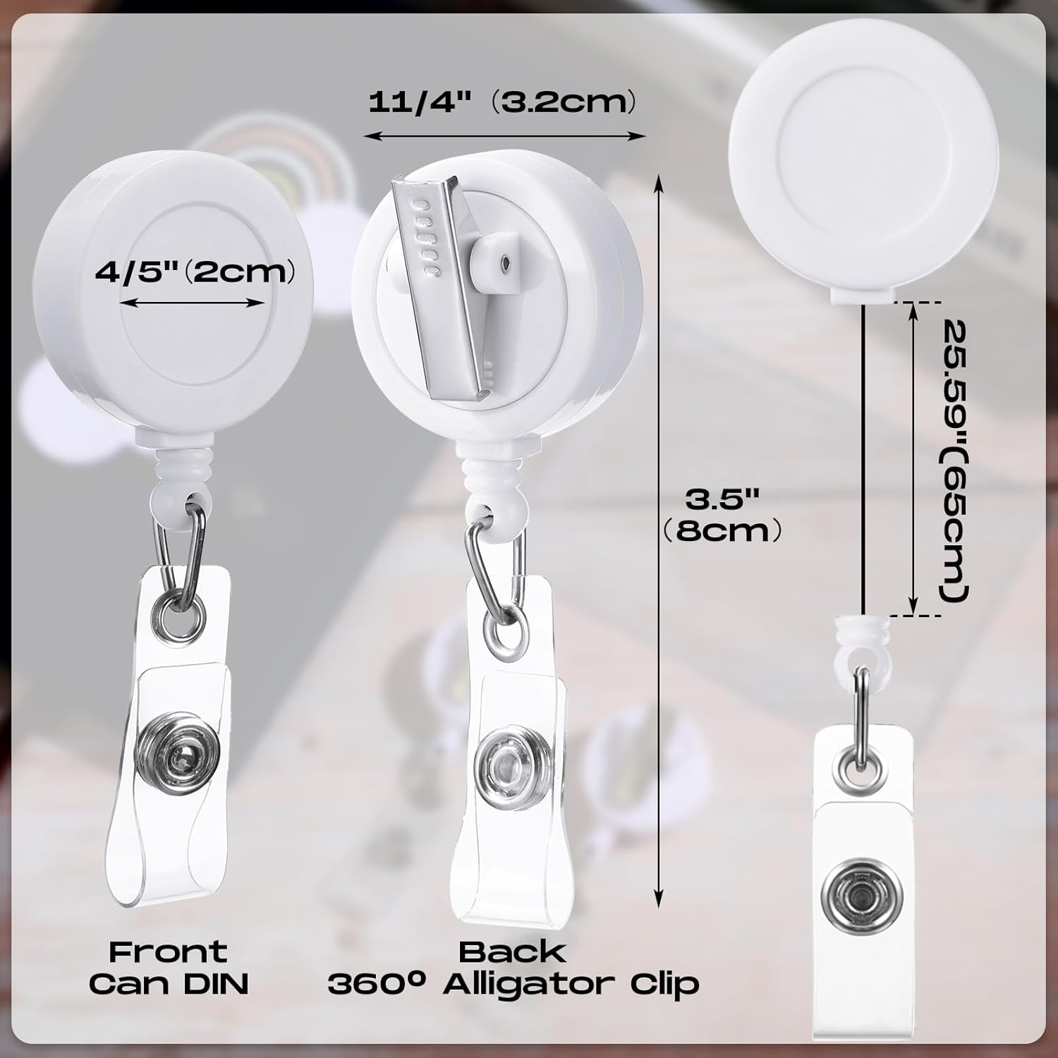 - Size information: each ID badge holder reel measures about 1.26 inch/ 3.2 cm in diameter, proper size for you to use; The retractable cord measures about 23.6 inch/ 60 cm (max.) in length, which is convenient for you to show your ID card without having to take it off
