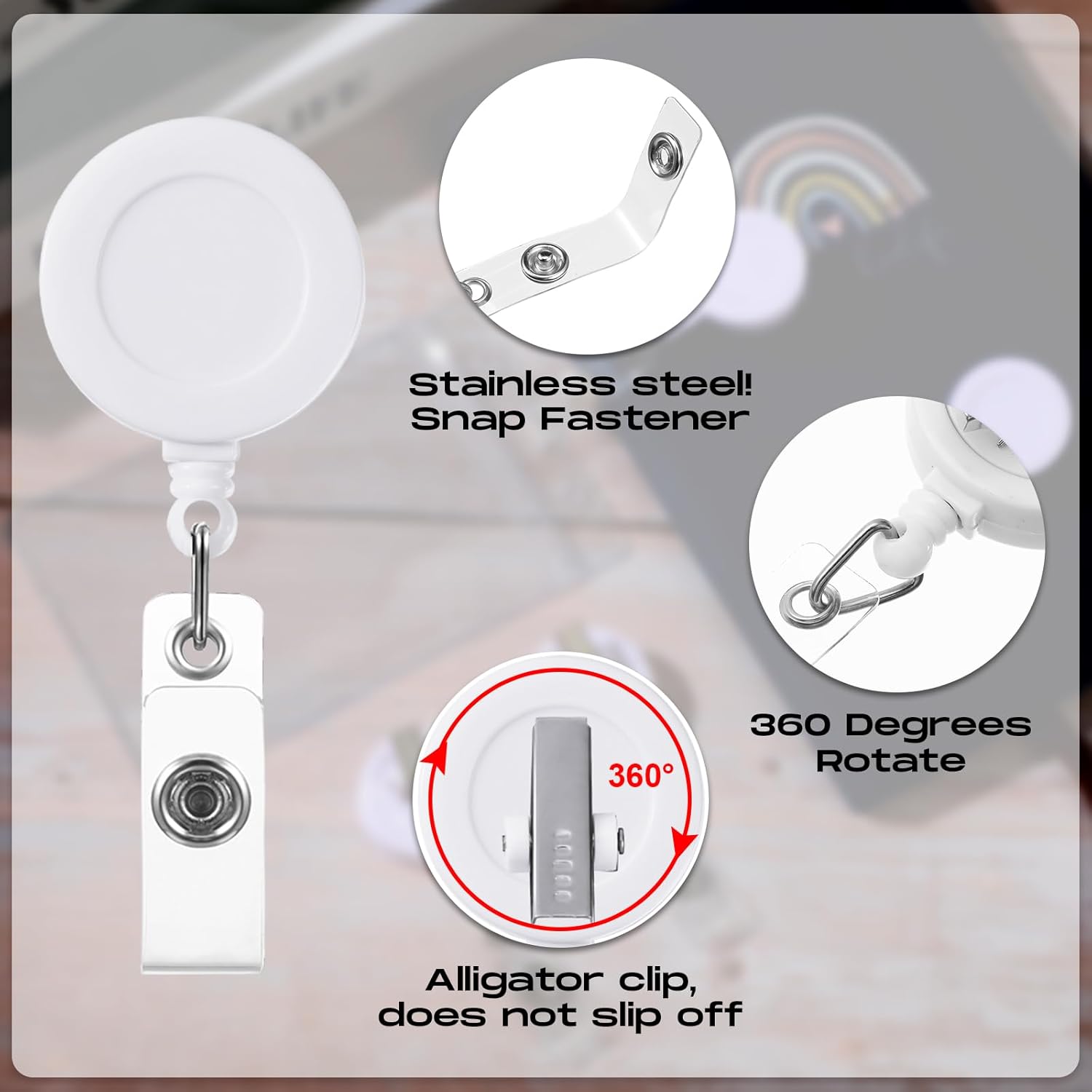 - Durable and sturdy: the retractable badge reel is made of quality ABS plastic and stainless steel, strong and durable, not easy to be broken; The alligator clip on the back can tightly hold your clothes, pants, bags or pockets, you don't have to worry about the badge reel falling off